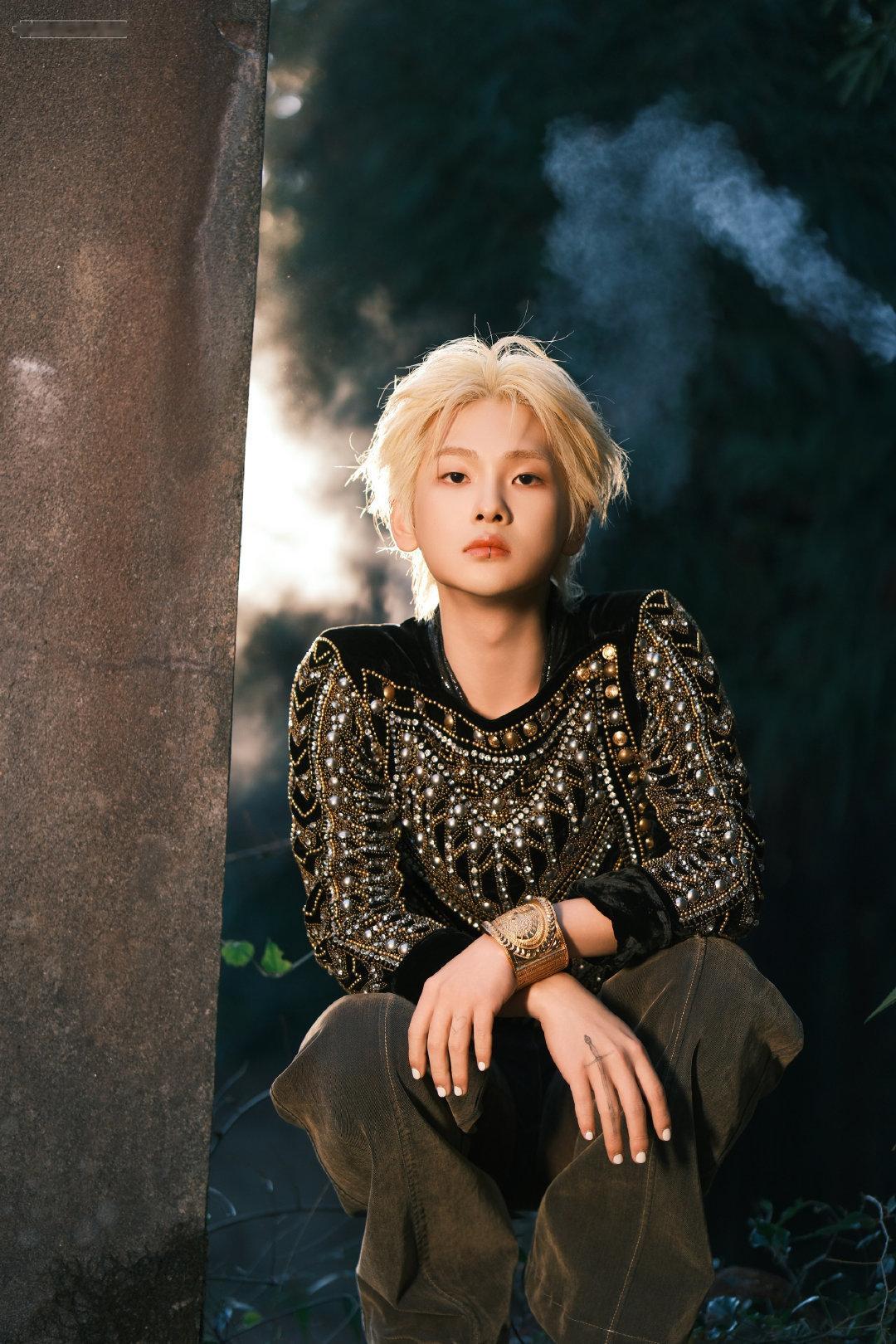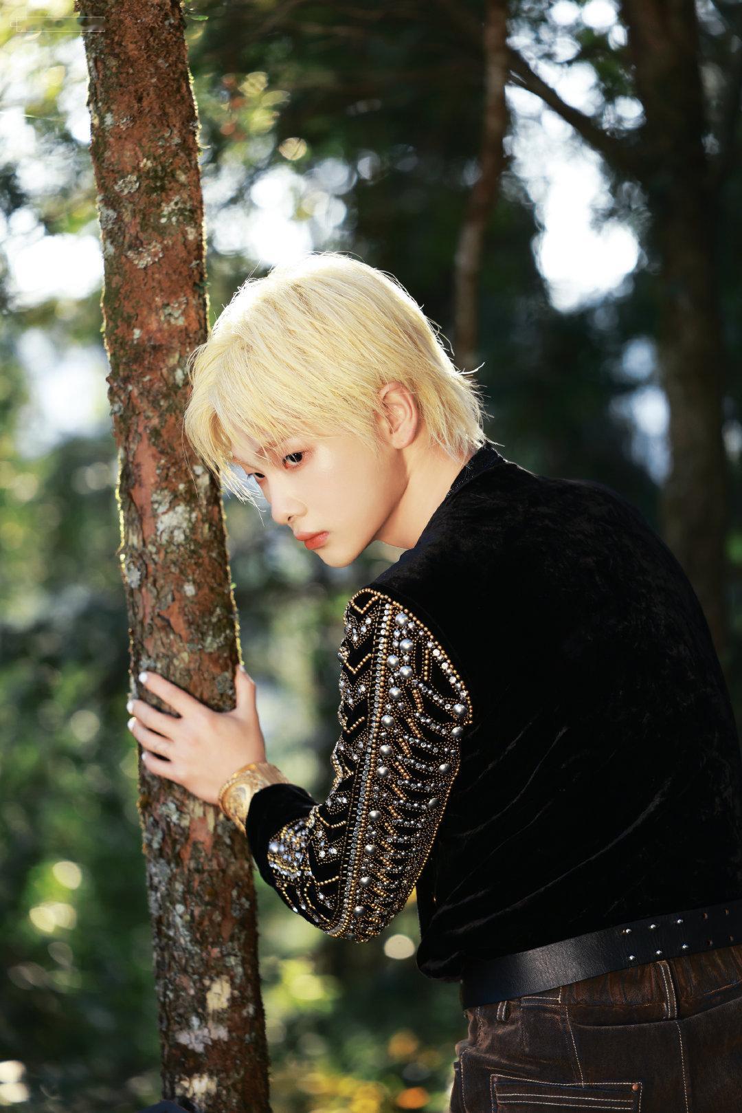 周震南 周震南浙江卫视跨年晚会造型出图金发搭配黑金重工上衣,森林里的贵公子氛围