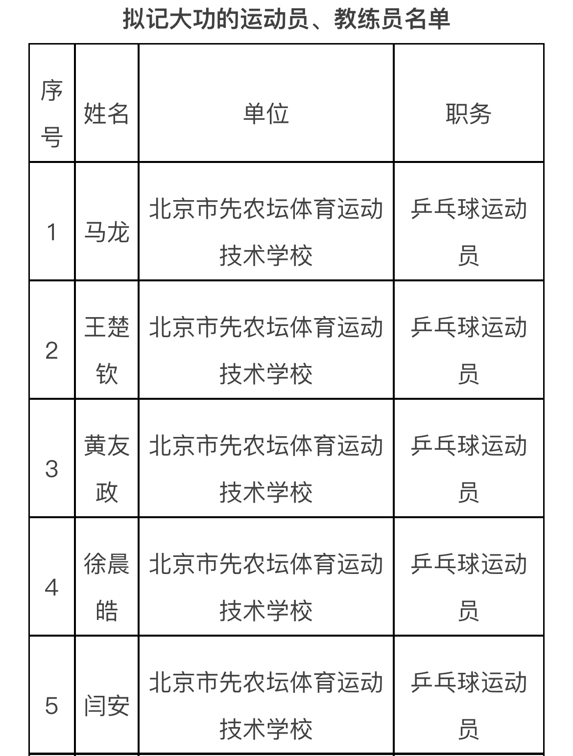 王楚钦北京十五运及时奖励拟记大功对象的公示