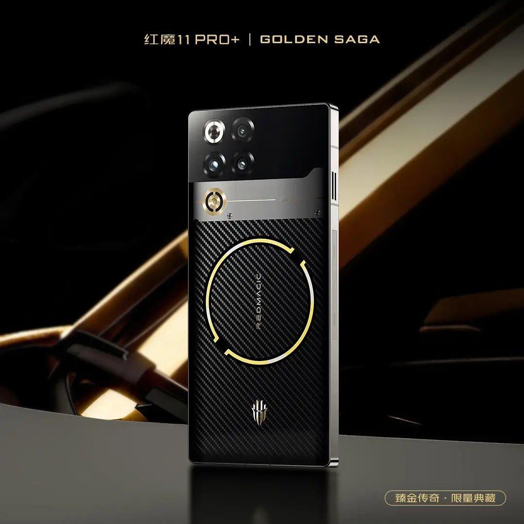 【红魔11 Pro+ /电竞平板3 Pro GOLDEN SAGA典藏版外观细节公布】红魔游戏手机官方今日发布了红魔 11 Pro+ 和红魔电竞平板 3 Pro GoldenSaga 限量典藏版的外观图,展示两款新机的更多细节。红魔官方已于昨日宣布两款新机即将上市。结合IT之家此前报道,红魔 11 Pro+ GOLDEN SAGA 限量典藏版已在今年 10 月亮相,主打“真金白银蓝宝石”设计,为硬核游戏玩家打造,采用超跑同款碳纤维材质,拥有航天级蓝宝石后盖 + 镜面银中框,还配备镀金 VC、金 & 银风道,行业首发流金水冷散热。同时,这款手机具备臻金电源键等元素,还拥有专属典藏礼盒,内含臻金 SIM 卡针,搭载高通骁龙 8 Elite Gen 5 芯片,配备“驭风 4.0”主动散热风扇和“ICE 魔冷散热系统”,散热效率提升 120%,辅以 5000 万像素双主摄,拥有 1/1.55 英寸 CMOS。值得注意的是,红魔 11 Pro+ GOLDEN SAGA 限量典藏版只有 24GB 内存 +1TB 存储空间一种版本,标价 9899 元。不过红魔官方并没有公布电竞平板 3 Pro GOLDEN SAGA 限量典藏版的具体售价,