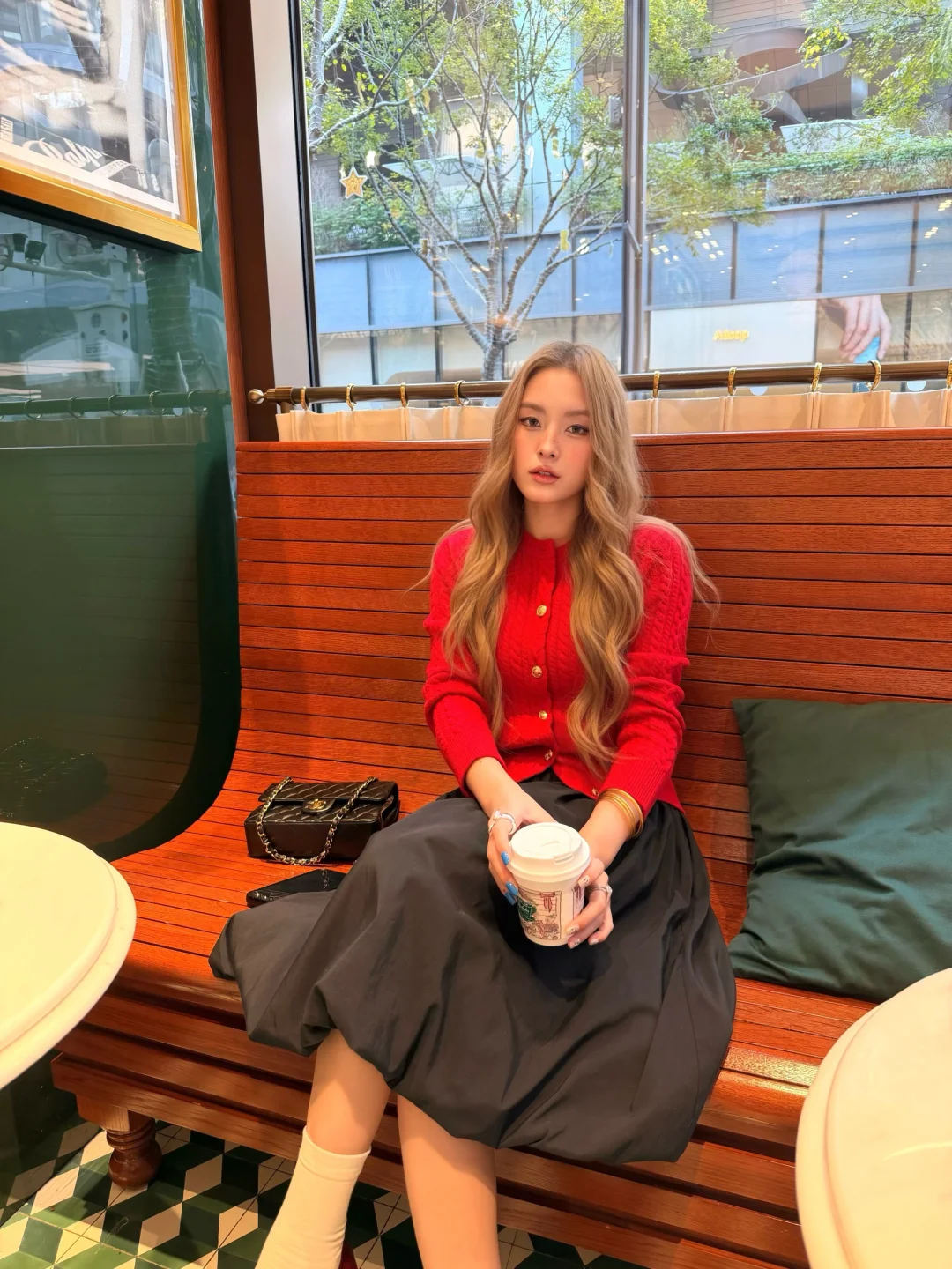 为新年准备的两种look🫶🏻 最喜欢TeenieWeenie这套粉色的~ 淡淡的温柔的浅色系搭配深色系的下裙有意想不到的效果 温柔又很有气质 和朋友约上去打卡拍照 往那一坐就自带千金气质感 很少穿红色的我还是尝试了一把 闺蜜说这个红很好看很高级耶 这种大面积的红 下半身再搭配深色系裙子 就会显得人十分有活力 很生动的颜色~ 面料上身很高级 针织衫很软很舒服 外套里还有棉夹 保暖又好看 新年穿搭就冲这两套!大方得体又好出片~