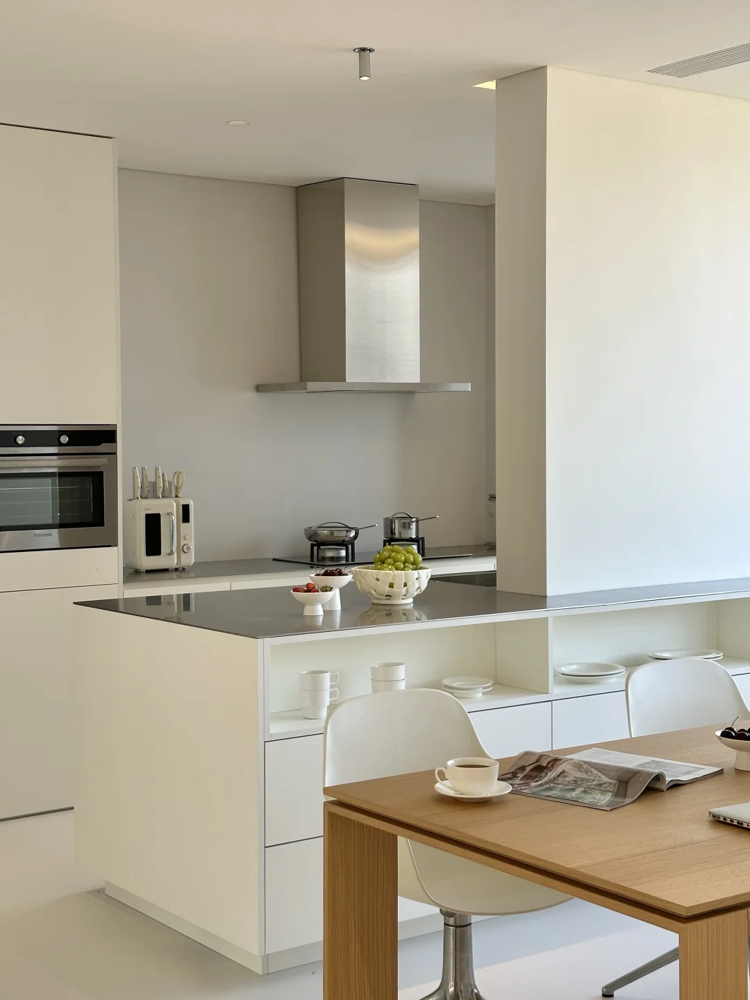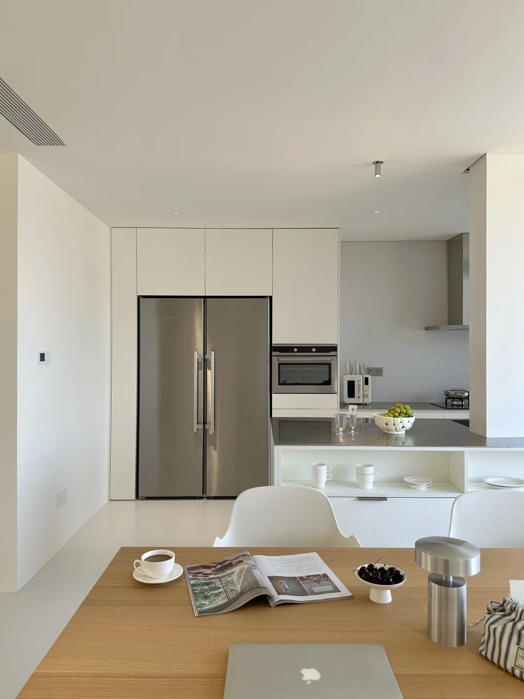 [种草R]放弃吊柜,白色橱柜和不锈钢台面和厨电的搭配,干净利落又高级