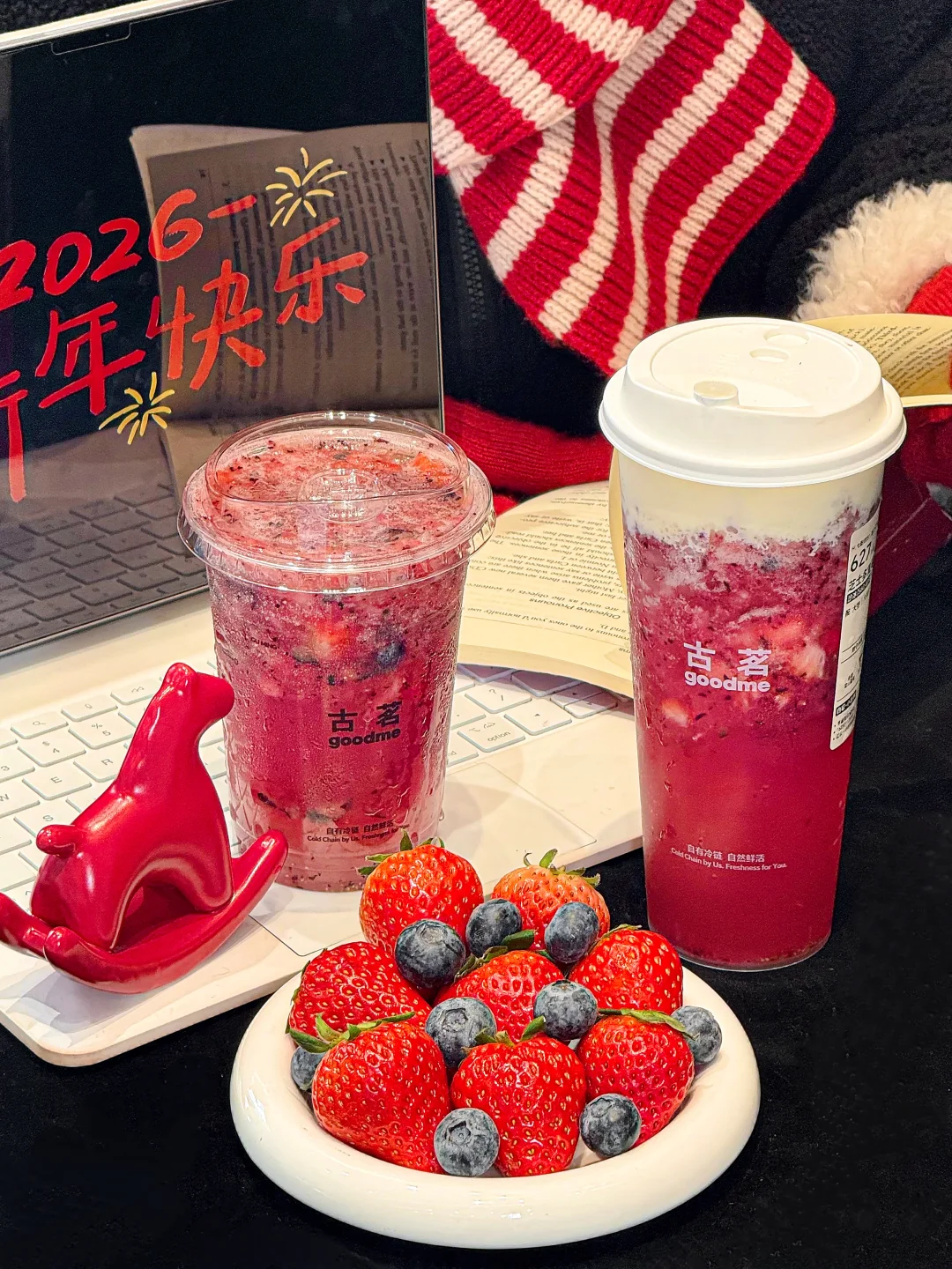 和好闺闺一人手拿一杯嘎嘎出片!一口下去新的⼀年都“莓”烦恼了谁能拒绝啊!!!