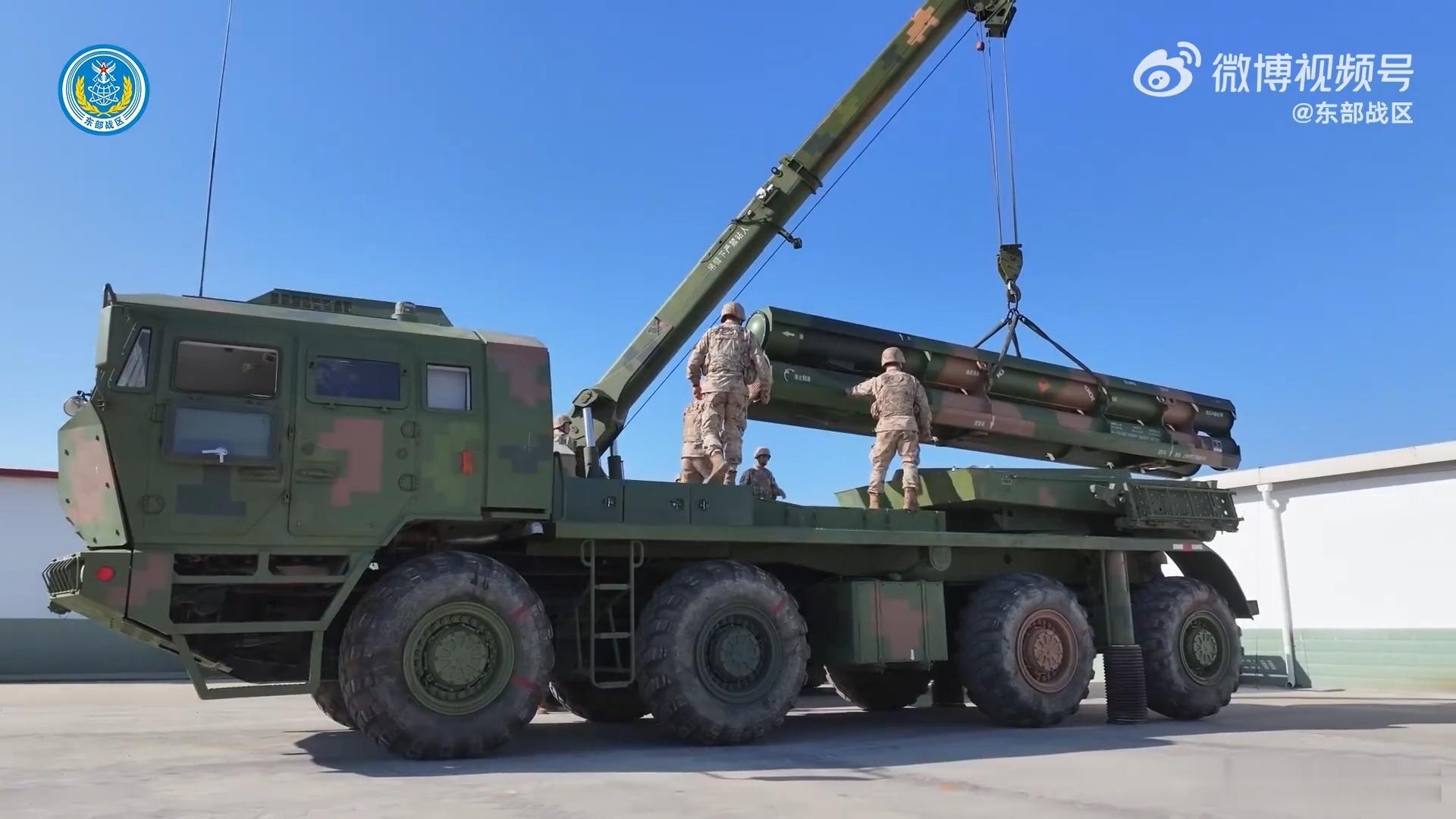 远箱火配套370(300)毫米火箭弹好图,来自东陆多支远火单位参与“正义使命-2025”演习报道。