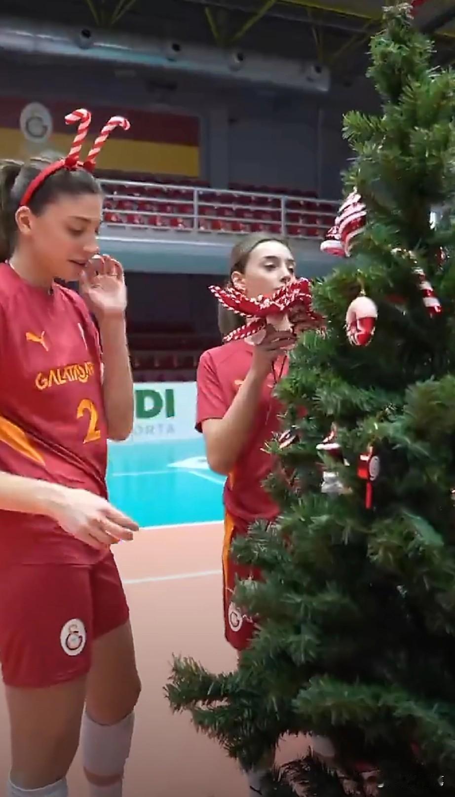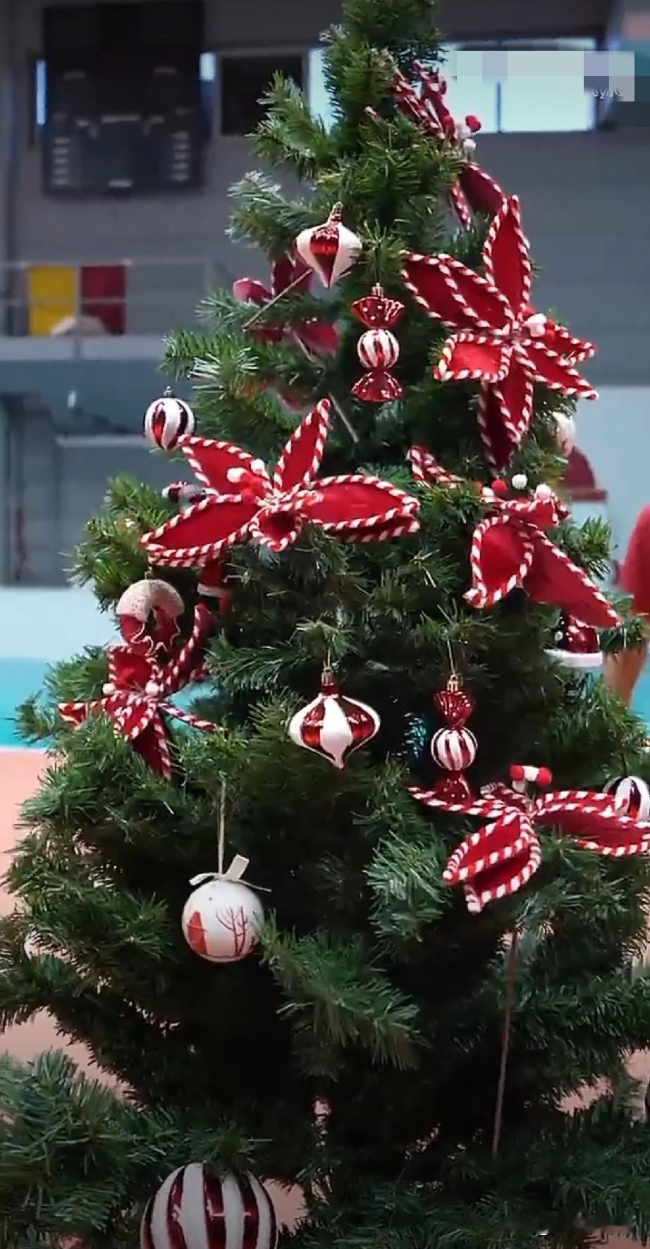王媛媛要在土超过新年了[呲牙] 看,头顶拐杖糖的她们,正忙碌着装扮新年树。她们用小巧玲珑的圆球,美丽大方的蝴蝶结,再搭配着生机勃勃的绿松,不一会的功夫,一棵年味浓浓的新年树作品就大功告成。快乐打球,幸福过年,祝媛媛在海外留洋的日子越过越好。王媛媛拦网 王媛媛封神之战