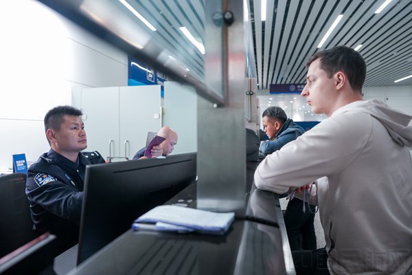 白云边检站移民管理警察为符合条件的外国人高效办理过境免签手续(白云边检站供图)