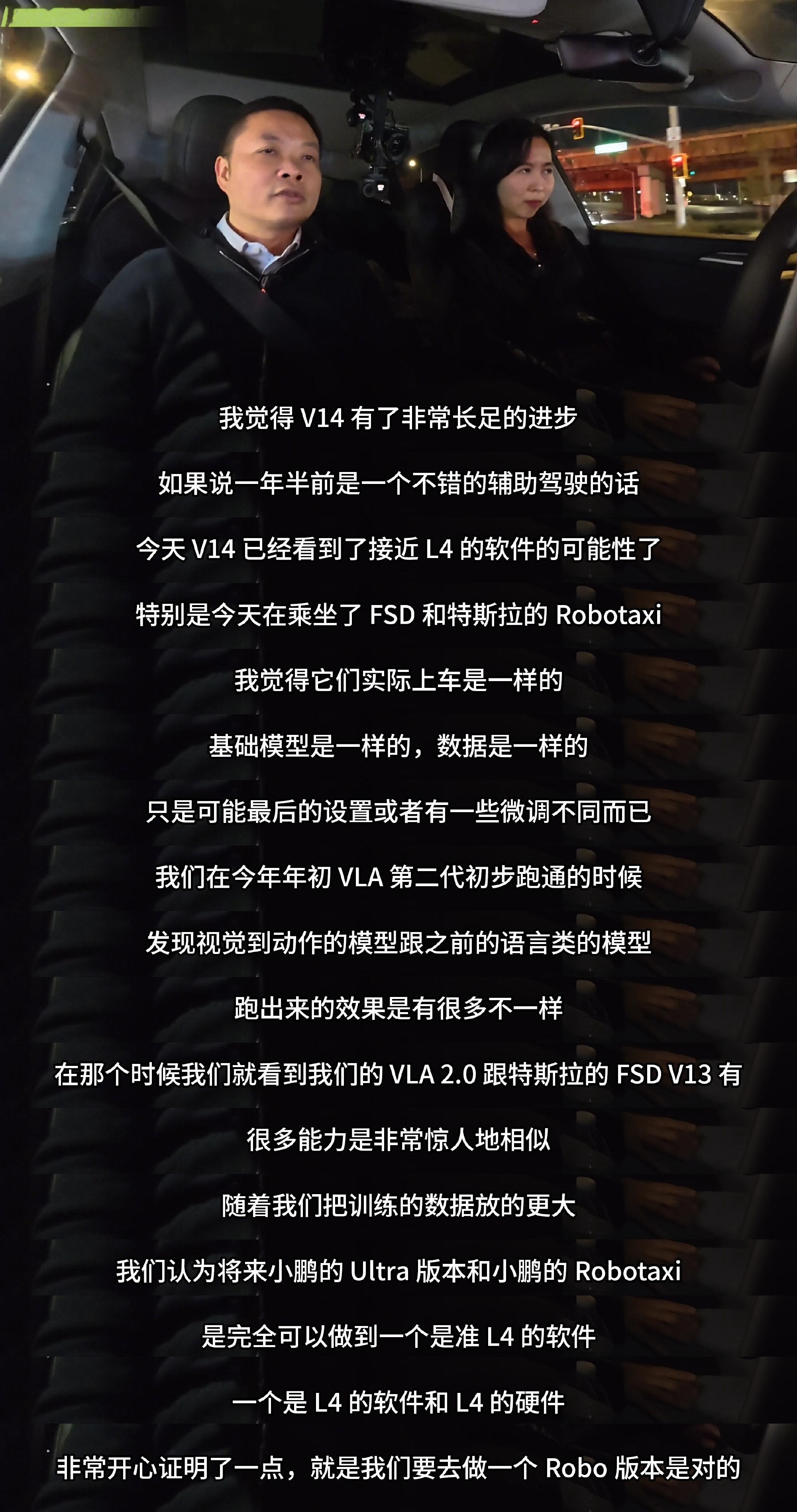 何小鹏专门跑到美国试驾特斯拉FSD V14.2,坦言已经看到L4无人驾...