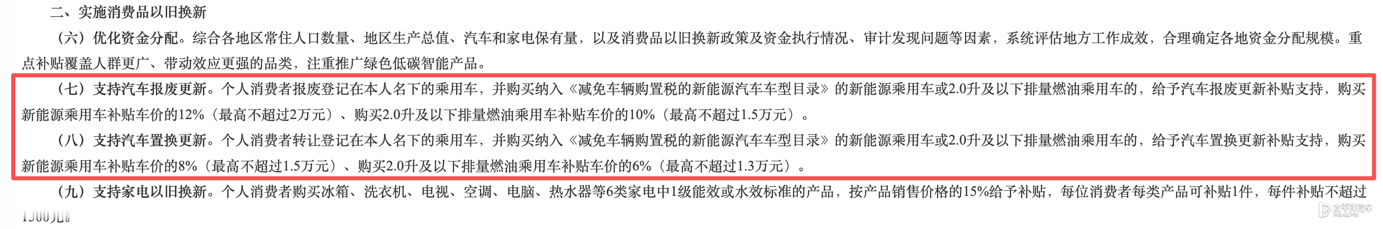 新能源车:车价8%补贴(最高1.5万元)