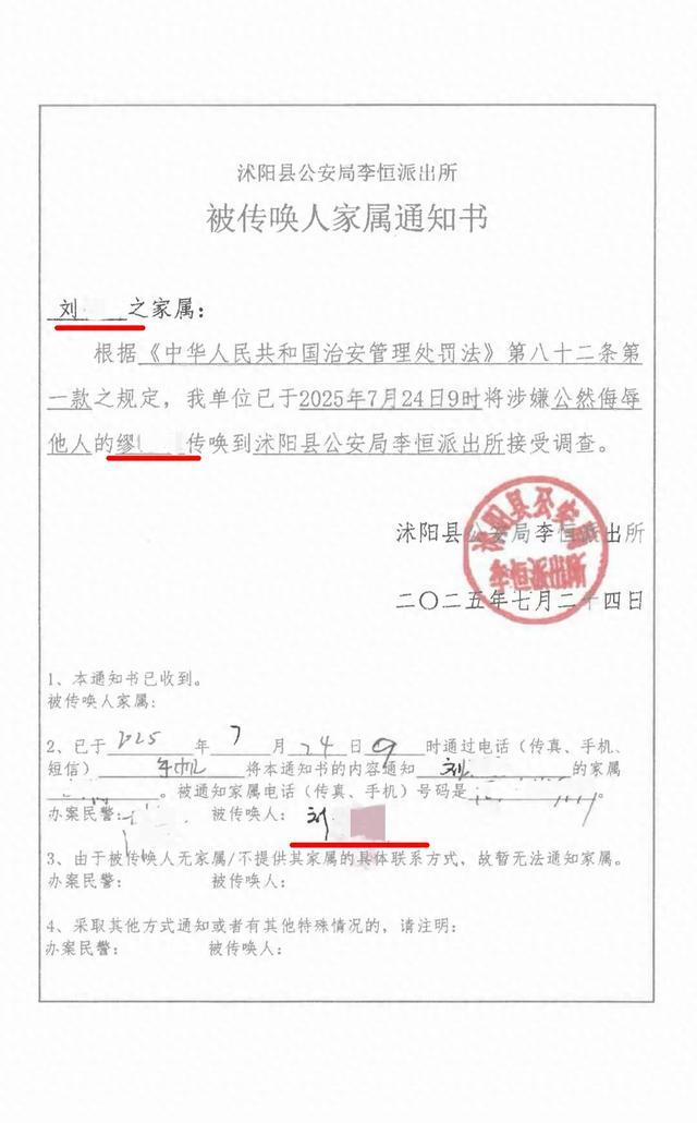 派出所出具的“被传唤人家属通知书”。(来源/受访者提供)