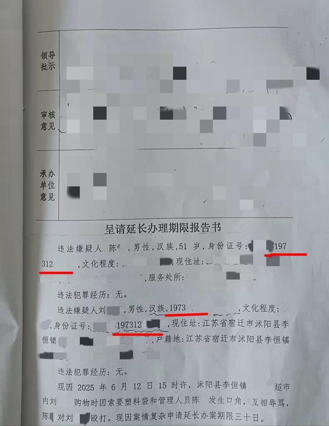 53岁的刘先生是沭阳县李恒镇某村村民,今年6月12日下午,他在当地某超市购物时因索要塑料袋和超市人员陈某发生了口角,互相辱骂,并遭到了陈某殴打。沭阳县公安局李恒派出所对该案件进行了处理,此后,陈某受到了罚款500元的行政处罚。刘先生提供的行政处罚决定书写道,2025年6月12日15时许,在沭阳县某超市内,陈某殴打刘某某(注:刘某某即为刘先生),经鉴定,刘某某的损伤不构成轻微伤……现决定对陈某罚款伍百元。