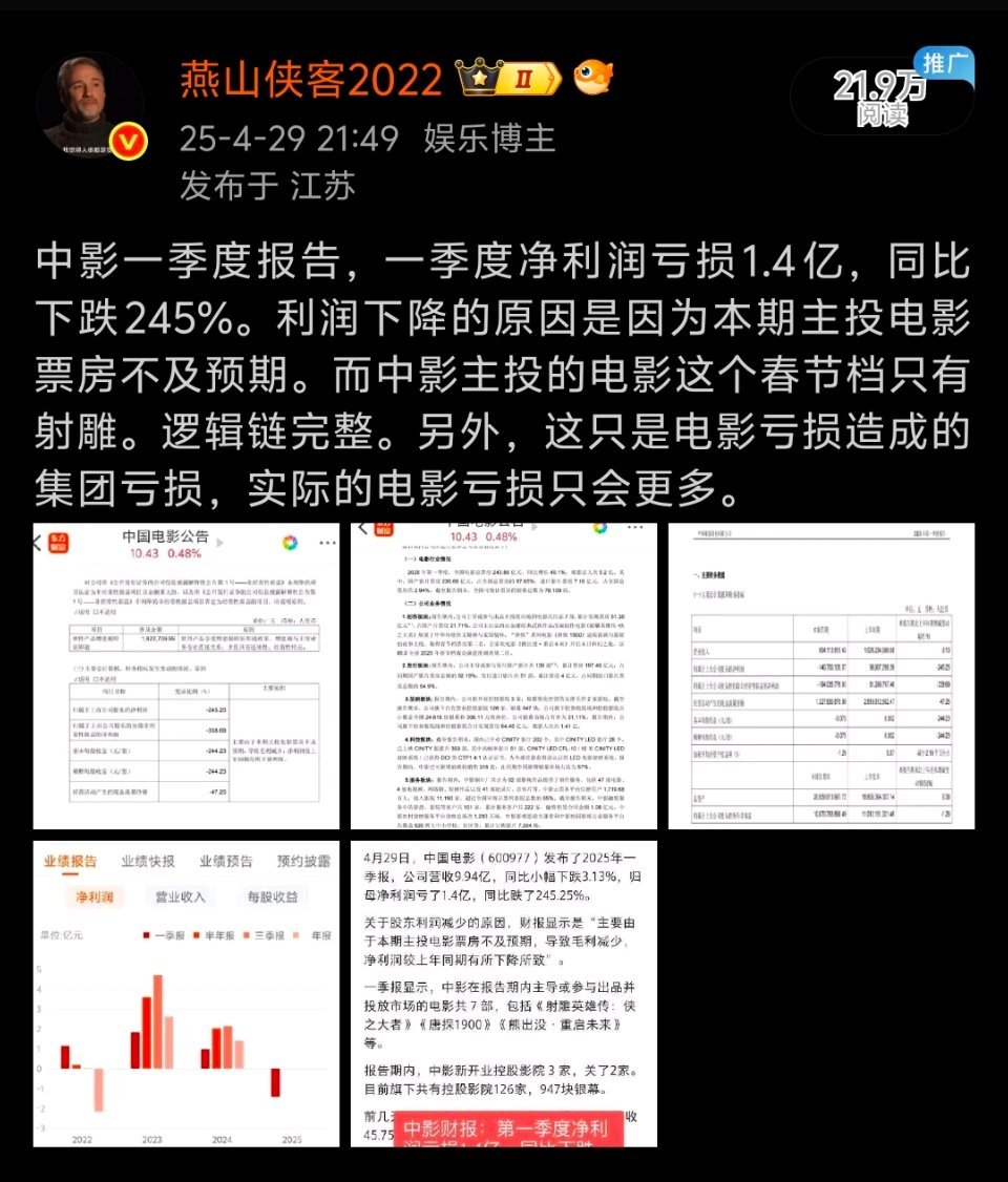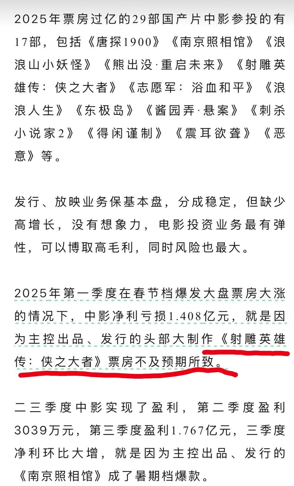 年终盘点,提及中影一季度的亏损,都不会少了射雕英雄传之侠之大者。业内公认,属于中影的一大投资失败。不仅投资亏损,还烂出了圈,喜提烂片全满贯。