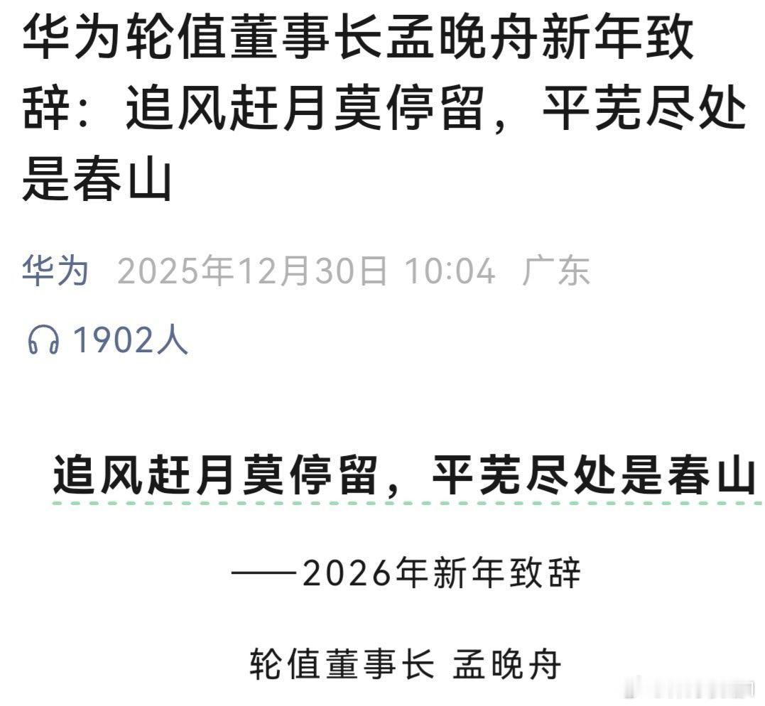 华为2026冲锋号:“追风赶月莫停留,平芜尽处是春山。”——孟晚舟用这句诗,拉开了华为2026年的战略帷幕。这不仅是新年致辞,更是一份面向智能时代的“出征宣言”。神灯作为一个华为深度观察者,分析下孟的字里行间,藏着华为2026年哪些战略布局?一、2025回顾:那些“极端场景”中的华为身影致辞开篇,华为带我们走遍世界角落:· 撒哈拉沙漠44℃高温下的网络优化· 大西洋七级风浪中的光缆修复· 海拔4300米雪域高原的绿色能源部署这就是华为的“战场哲学”——不在实验室里空谈技术,而在世界最艰苦处验证价值,华为人在哪里,战场就在哪里。二、2026战略聚焦:七大战场全面出击1.鸿蒙生态繁荣:26年持续完善优化主流应用,并攻克更多的小众应用,大力发展鸿蒙独占的特色功能。从“可用”到“好用”再到“爱用”,重构用户体验。目前鸿蒙5.0以上终端超3600万,26年将冲刺1亿台。2. 算力底座建设:鲲鹏昇腾双引擎驱动,死死卡住AI算力的命门鲲鹏生态:6800+合作伙伴、380万开发者昇腾生态:3000+合作伙伴、400万开发者openEuler装机量超1600万套推动“集群与超节点技术普惠”——让超级算力不再是大企业的专属。这一点对华为至关重要,因为华为的昇腾算力生态,过去只有那些大型机构与组织用起来方便,华为接下来要想办法让中小组织也能用上。这样才能在未来与英伟达的竞争中有胜算。华为一直在说赋能千行万业,那必然不能只服务一些巨头。华为算力明年要进军韩国市场,正面对刚英伟达的消息大家想必也知悉了。3,行业智能化深耕:“大兵团”垂直作战华为不再满足于“卖设备”,而是深入行业核心场景:医疗病理AI诊断炼钢炉温精准预测油气勘探智能分析这意味着华为正从“技术供应商”转向“行业变革合伙人”,这不仅是市场扩张,更是价值链条的重新定义。深入千行百业,硬生生改造每一个传统行业。4, 水战略”提出,从5G到5G-A的质变让AI像水一样融入通信网络,实现从“联接”到“智联”的跃迁。这意味着网络将具备自优化、自修复、自演进能力5.,智能汽车双线并进鸿蒙智行:五界联合重新定义高端新豪华标准!冲刺年销百万辆华为乾崑:已服务140万+车辆,辅助驾驶里程近70亿公里独特优势:华为不造车,但赋能所有车——这种“朋友圈”模式可能比亲自下场更具渗透力。26年鸿蒙+乾崑双模式全面上量,横扫15万以上全价位段赛道6,重构AI数据中心:“让每瓦特产出更多Tokens”——在算力军备竞赛中,死磕极致能效,能效即竞争力。7,液冷超快充电网的覆盖铺设让高质量充电像5G信号一样,遍地都是、触手可得;让有路的地方就有高质量充电”——这不仅是技术,更是补能基础设施的话语权孟晚舟直言:“这条道路遍布暗礁与险阻,但我们别无选择,唯有迎难而上。”“最终的胜利,属于那些敢于挺身而出、勇于自我批判的奋斗者。”这句话揭示华为最核心的竞争力与精神底色——不是技术,不是市场,而是那股“追风赶月莫停留”的奋斗者文化。孟晚舟的致辞没有华丽的预测,只有扎实的路径。在世界科技格局剧烈动荡的今天,华为选择了一条最难的路——深入产业腹地,啃最硬的骨头。正如那句诗:追风赶月莫停留。华为已经出发,而前方,平芜尽处,正是智能时代的“春山”。华为华为科技华为手机鸿蒙 北京