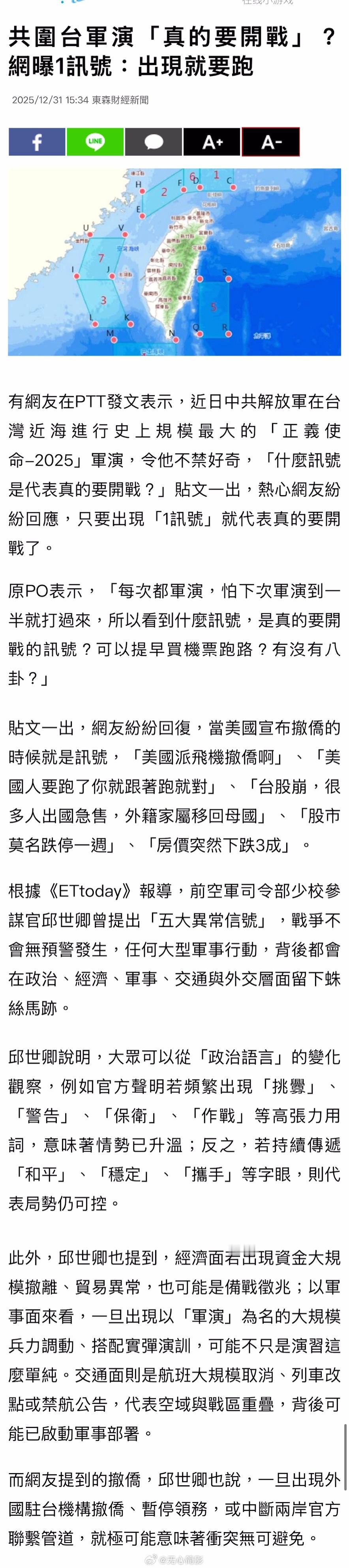在大陆军演期间,台湾岛内讨论,出现哪些情况才说明真要打了,到时候应该马上跑路