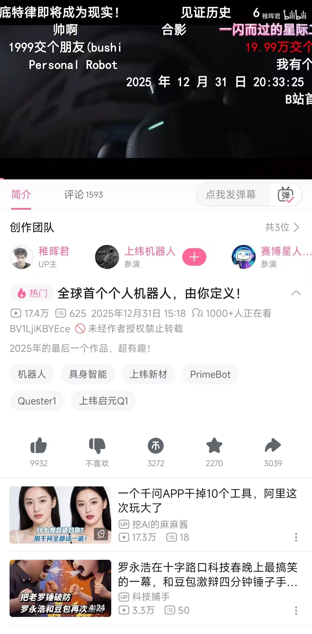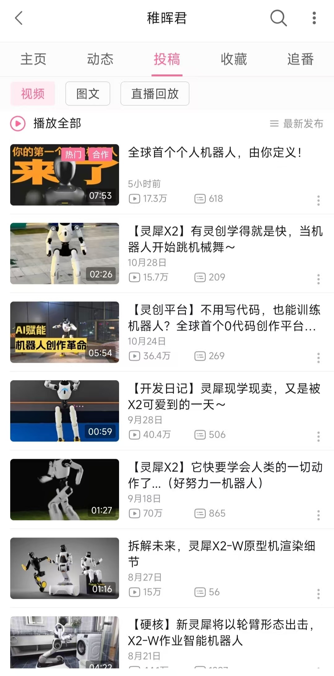 全球首个个人机器人 刚刚央视跨晚上看到了人形机器人灵活的表现,从春晚到跨晚过去不到一年时间,人形机器人可谓是进步飞速。在这背后一定要了解的人物就是“稚晖君”和他的团队!熟悉稚晖君的朋友一定知道,他既是智元机器联合创始人也是一名小破站up主,从自动驾驶自行车、高精度机械臂、B站迷你小电视... ...到发布具身智能机器人“灵犀X2”。今次“全球首个个人机器人”的亮相视频也让大众对其表现充满了好奇!大家可以去破站稚晖君主页 follow 进展,喜欢的记得三连支持一下这个科技天才!稚晖君首发全球最小全身力控人形机器人