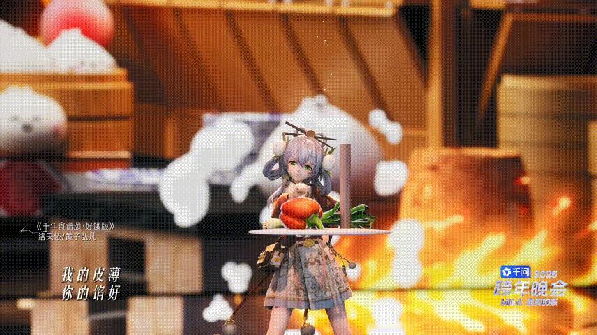 不建议空腹食用黄子弘凡洛天依舞台 千年食谱颂好饿版太上头!黄子弘凡清甜唱腔+洛天依萌音,rap部分还超有惊喜