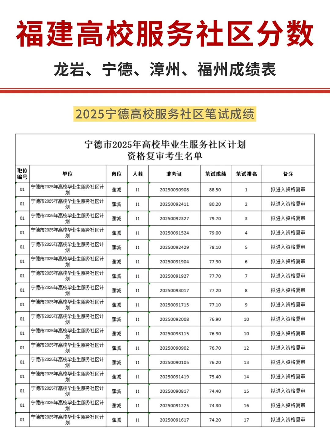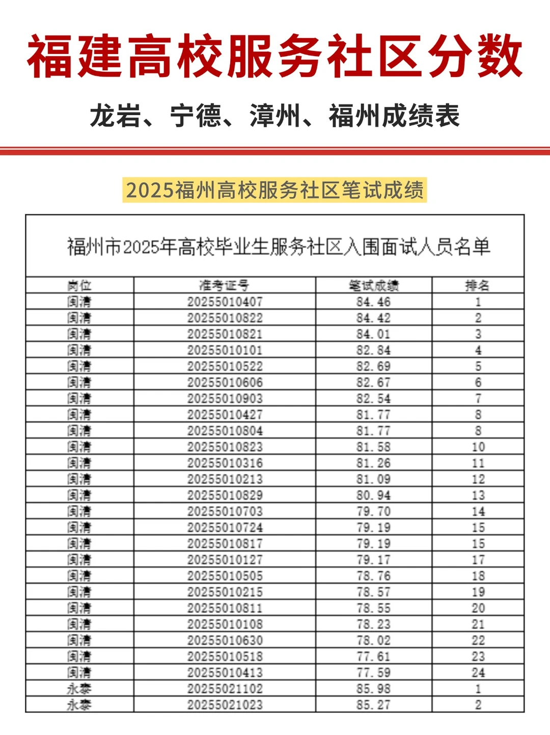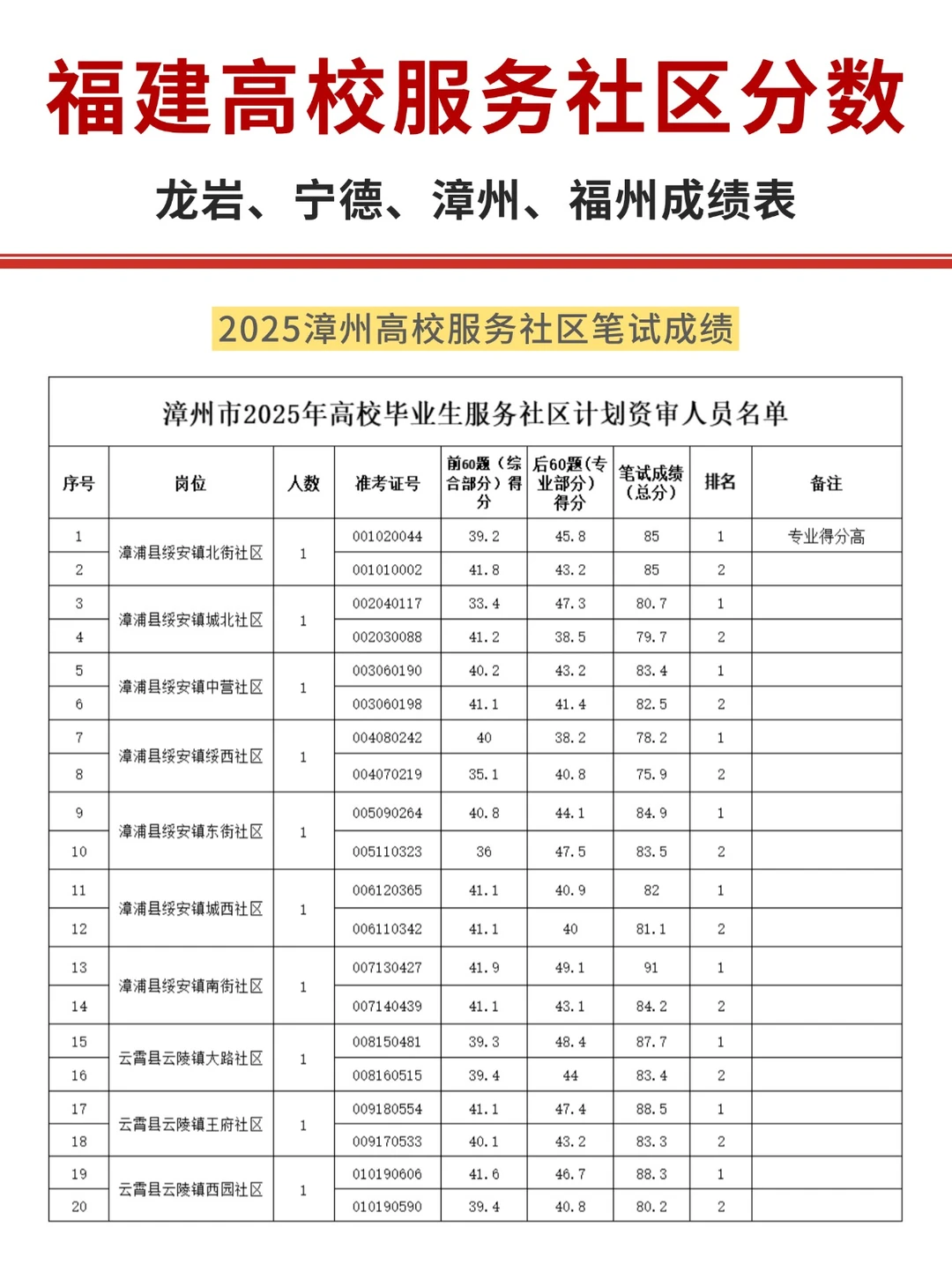龙岩笔试蕞高79.3分 福州笔试蕞高85.98分 漳州笔试蕞高91.7分 宁德笔试蕞高90.2分 福建高校毕业生服务社区 福建省高校毕业生服务社区 福建省高校服务社区 高校毕业生服务社区 福建事业单位 福建基层服务项目 福建省高校服务社区 服务社区