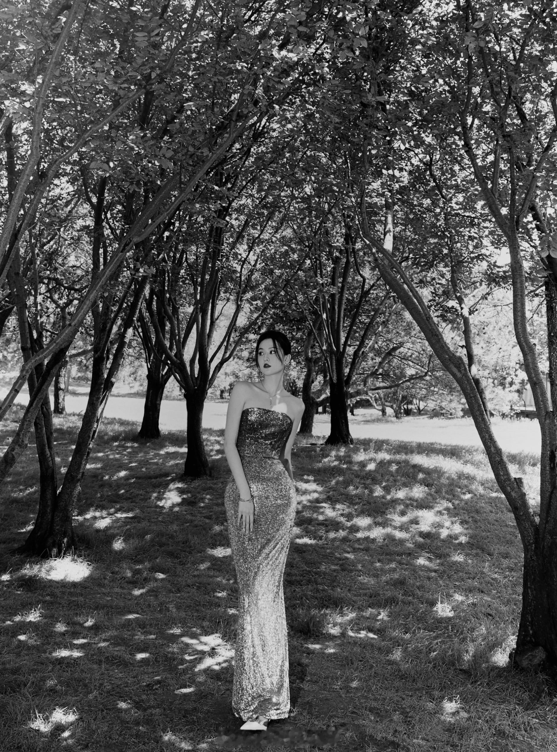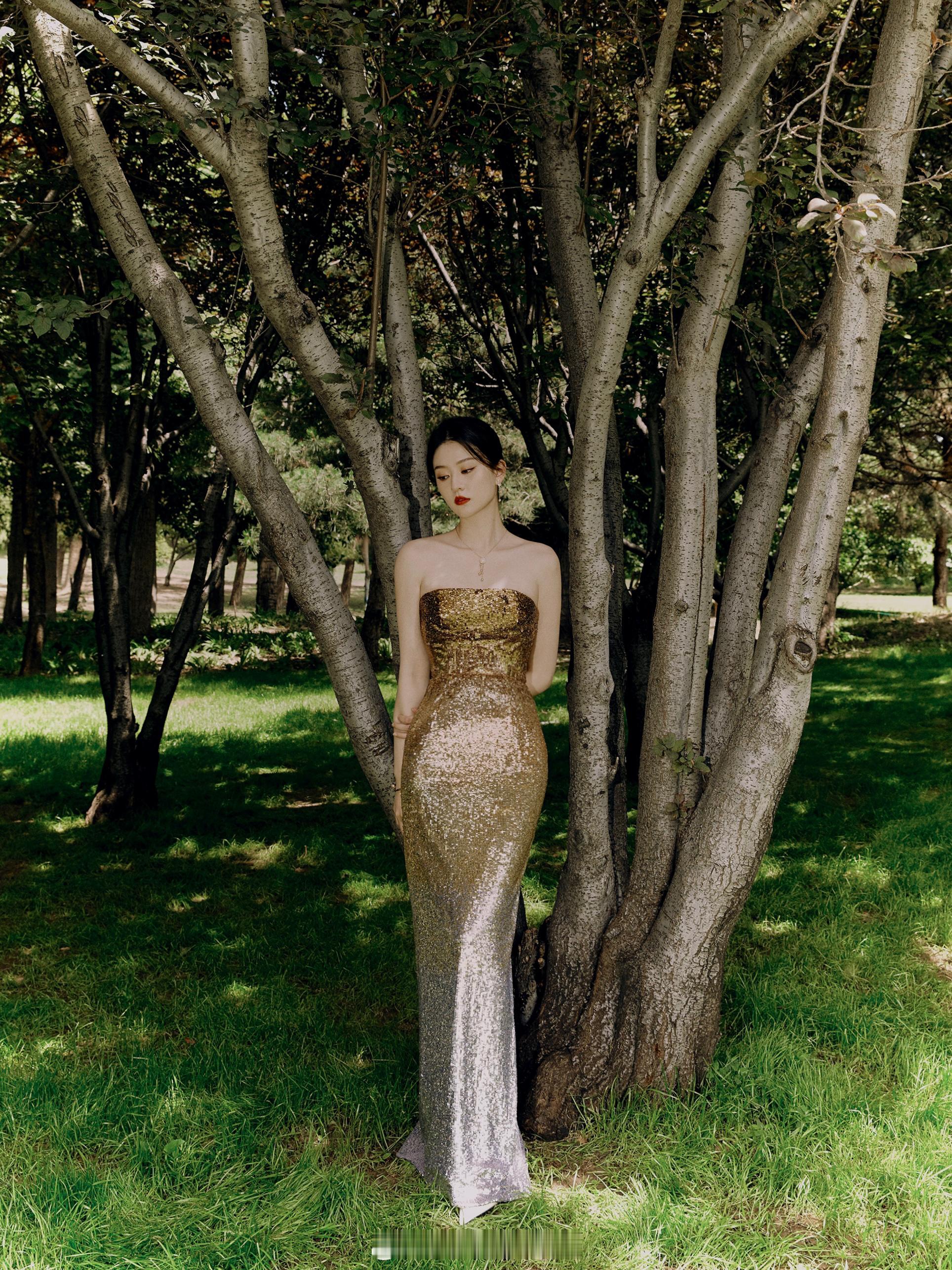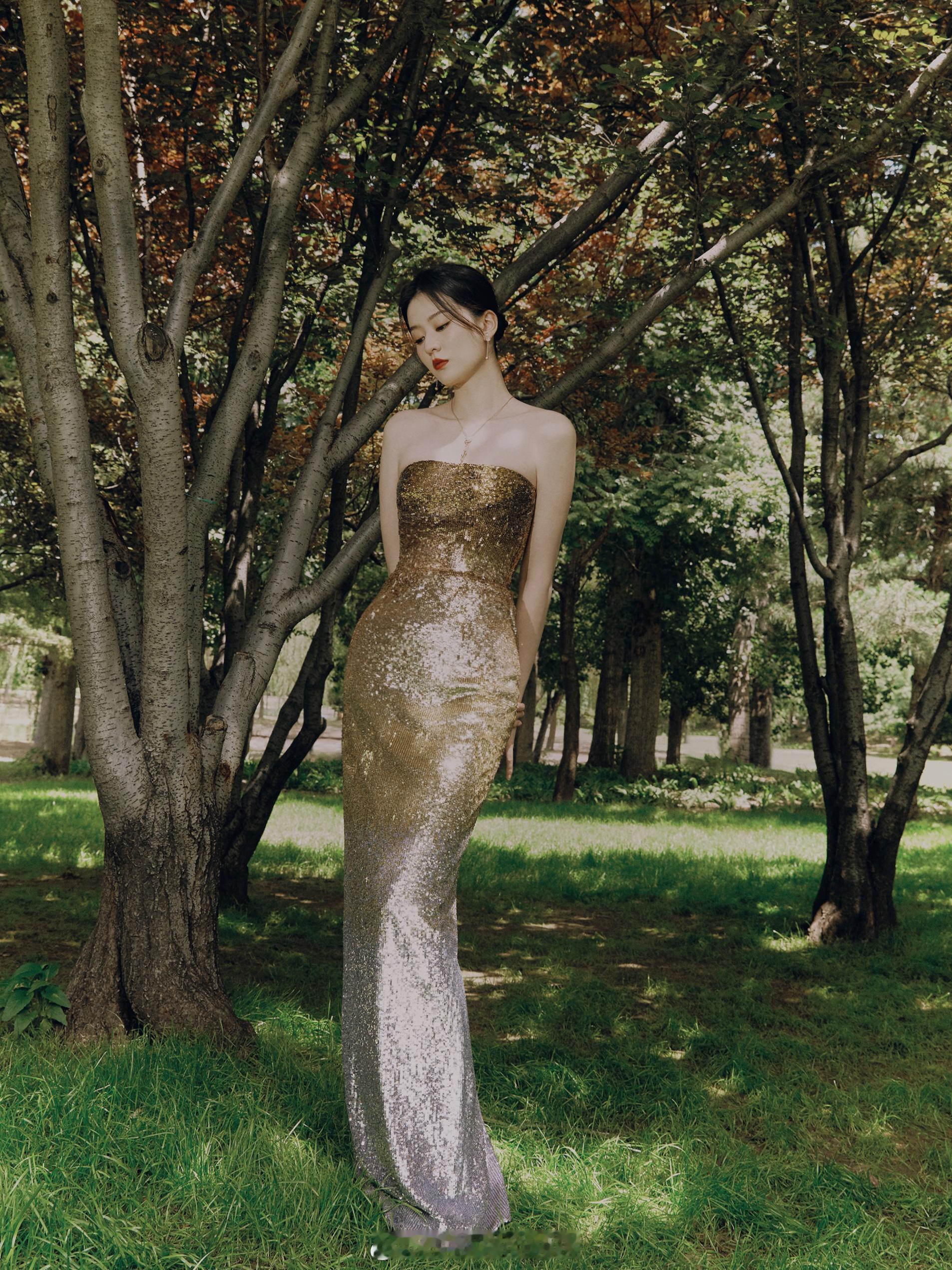 乔欣鎏金渐变鱼尾裙