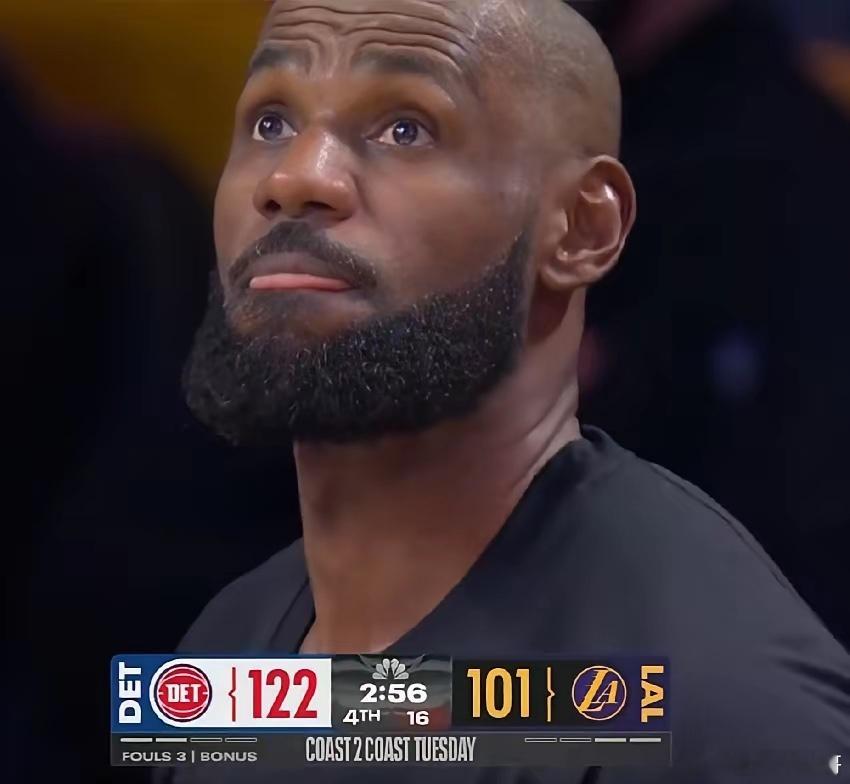 联盟和肖华对不起詹姆斯,明知道今天是詹姆斯41岁生日夜,还要在主场安排东部第一活塞队,明显是不给老詹面子,故意看他笑话。当然詹姆斯本场自己也不争气,17中6得到17分5失误。眼睁睁在替补席看着球队主场被活塞蹂躏血洗,这个生日过得糟心。nba湖人詹姆斯生日夜又输球了