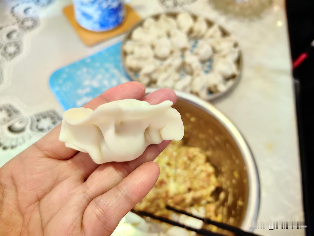 晒图笔记大赛刚刚包好的饺子[呲牙] 皮薄馅多,看着就有食欲🥟🥟🥟 窗外寒风轻吟,屋内暖意正浓,案板放平铺展,韭黄馅料鲜香,大人小孩各有分工,忙得不亦乐乎。 合面醒面、揪剂擀皮一气呵成,圆圆的饺皮薄厚均匀,递到手里皆是妥帖,巧手翻飞,取皮放馅,指尖轻捏,一只只饱满的饺子便排着队落了盘,褶子精巧,模样周正。 入门级选手包出的饺子歪歪扭扭,不是露了馅就是塌了腰,脸上却满是欢喜,笑声裹着饺香飘满全屋。 一枚小小的饺子,裹着欢喜,藏着一家人最朴素的幸福,这便是冬日里最暖心的滋味。