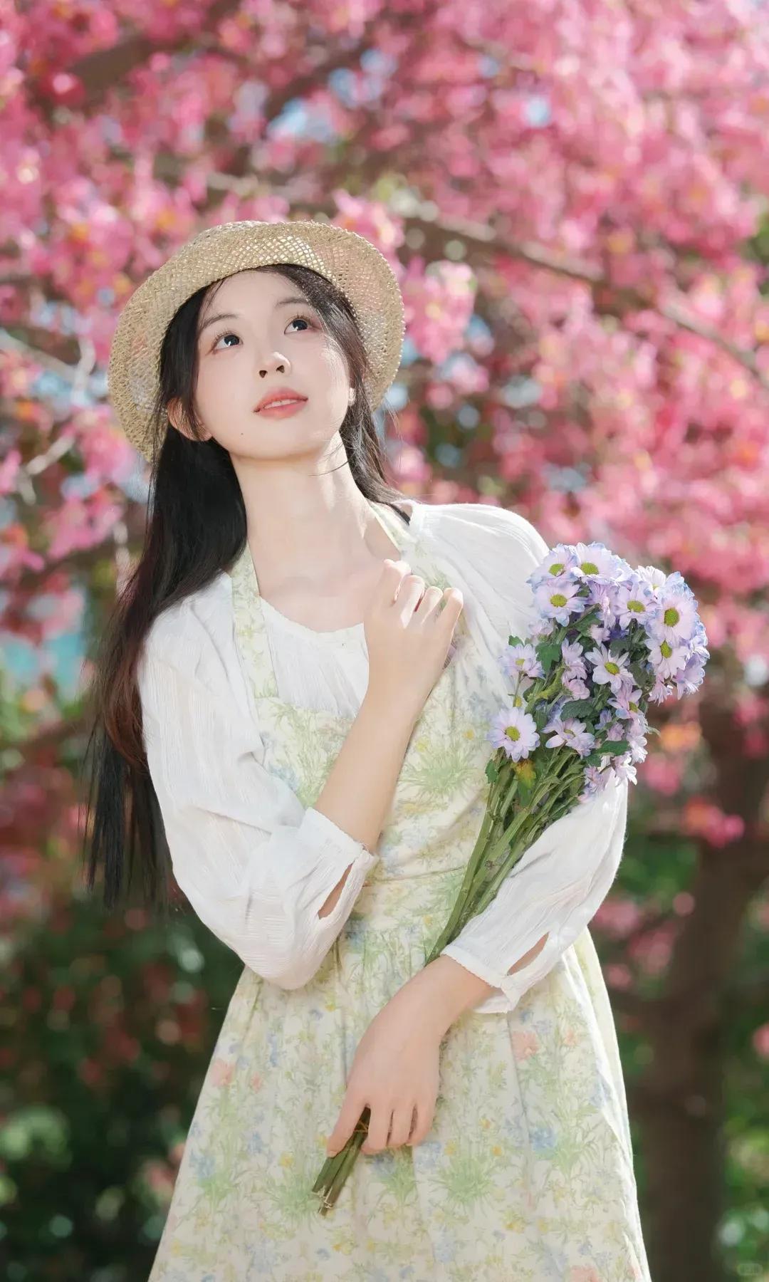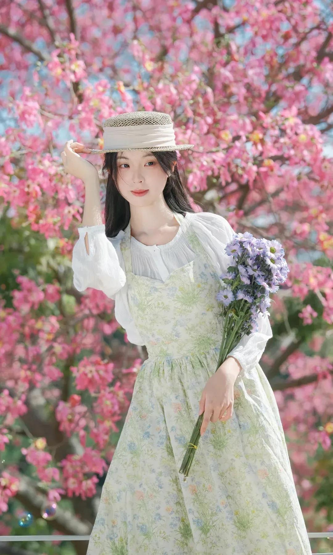 青衣美人倚绿树,笑语盈盈暗香来。