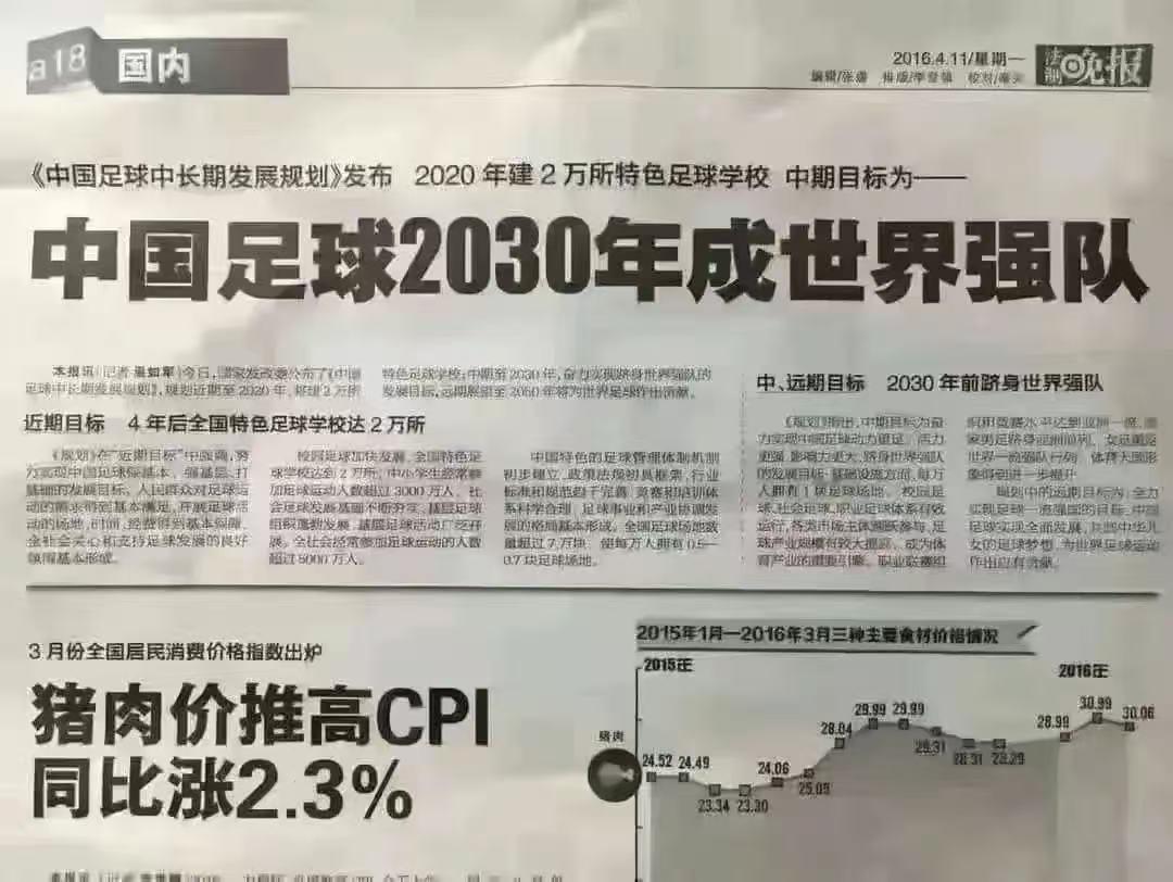 还有4年,目标仍然遥遥无期! 在2016年的时候,足协曾发布长远归划,想让中国足
