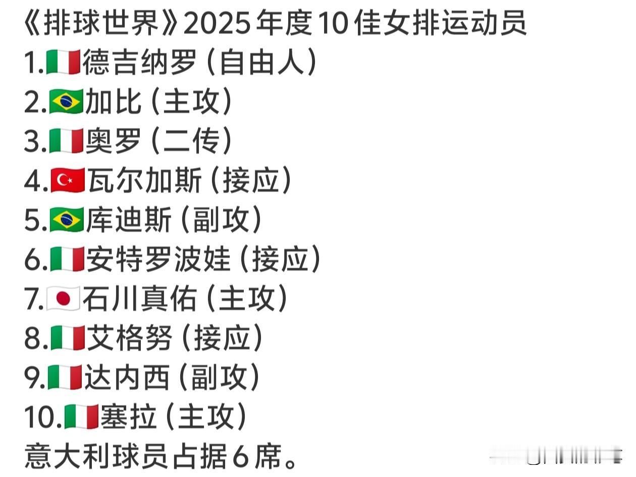 中国女排2026要打出一片天[赞] 瞧,媒体评选的2025世界女排最佳几乎都被意大利垄断了。我们不缺好苗子,李晨萱,夏思佳,陈厚羽,张籽萱,王奥芊,董禹含,一抓一大把,希望2026多给她们参加国际赛事的机会,让她们全方位的多历练多提升多见识,打出自己的一片天。女排超级新人 女排实力 女排巨星风云榜
