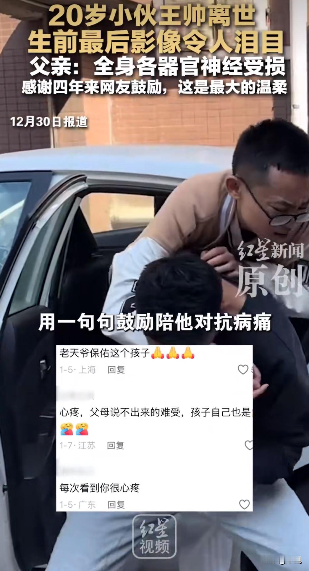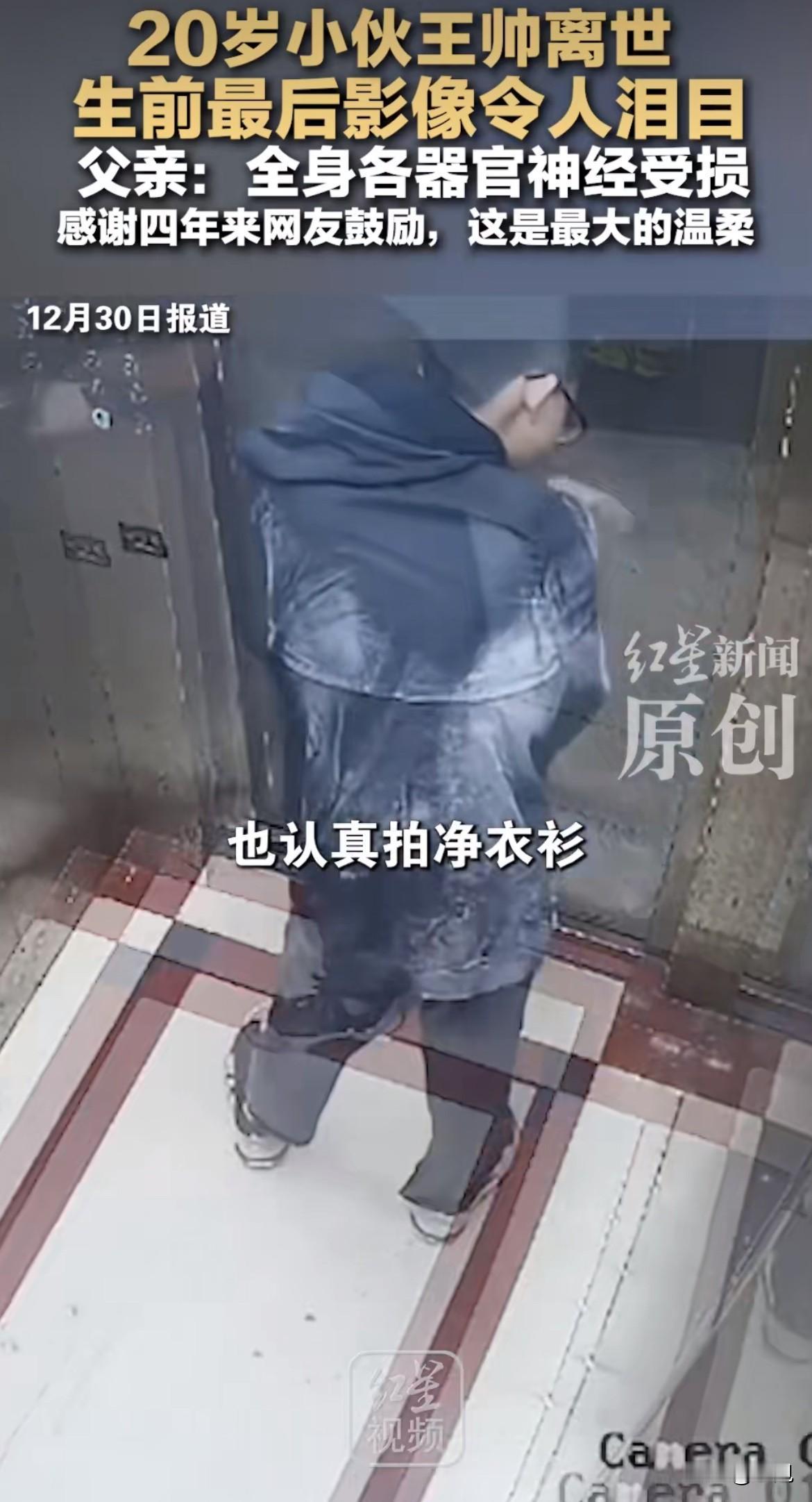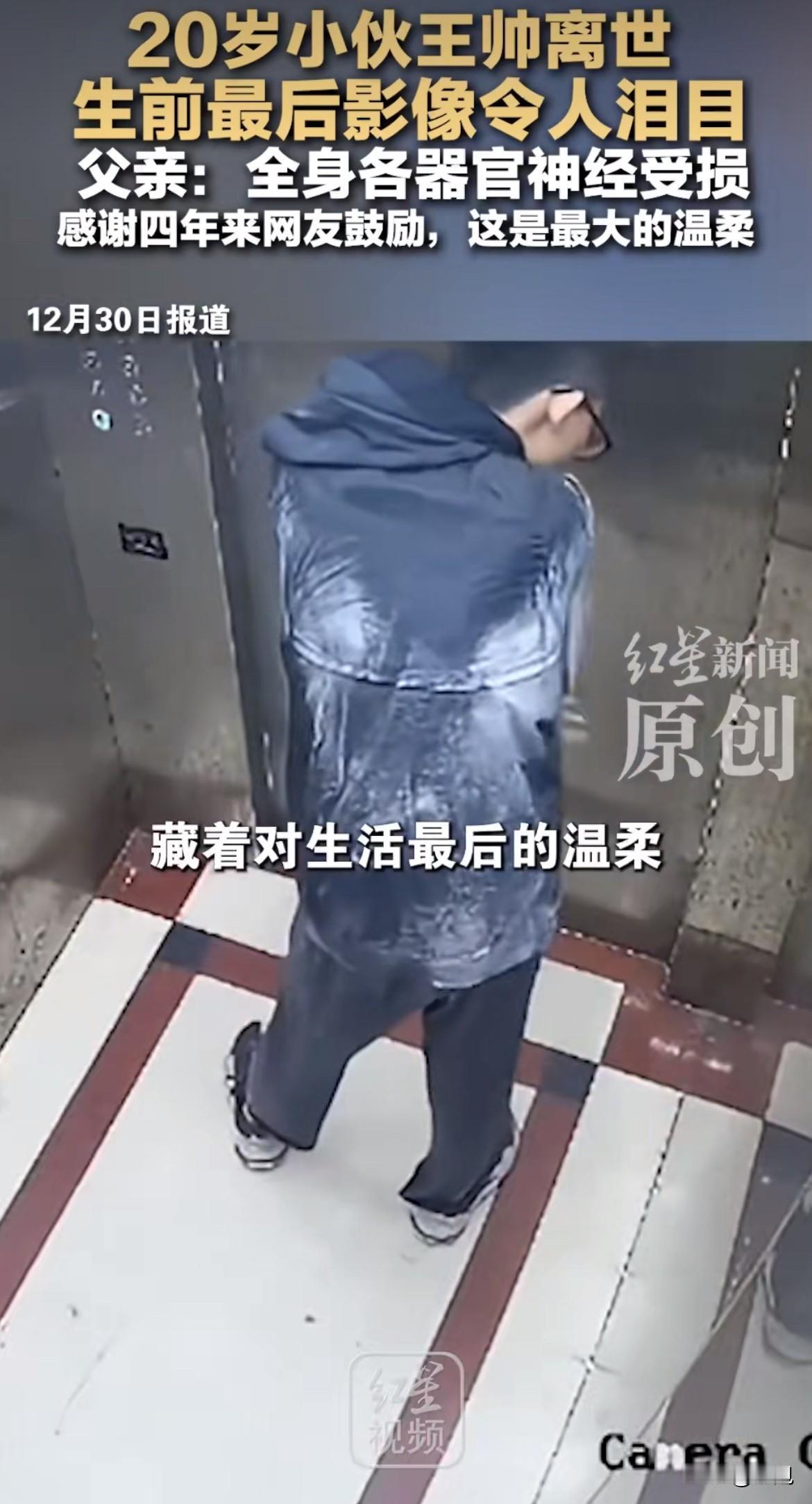 凌晨五点零七分,电梯监控拍下了一个年轻人最后的体面。 他深蓝色外套上沾满白灰,站都站不稳,却用尽力气一下下拍打着衣服。拍干净了,他才按下1楼的按钮,径直走向小区湖边。几个小时后,20岁的王帅被打捞上来,他四年来日日夜夜的剧痛,终于停了。 这个年轻人,原本手里攥的是一手人人羡慕的好牌。从湖北农村跟着打工的父母到东莞,他争气得让人心疼,奖状贴满了出租屋一整面墙。2021年夏天,他考上了东莞顶尖的松山湖学校,一只脚仿佛已经迈进了好大学。那时候他爱打篮球,能跑能跳,未来全是光亮。 可开学才一个多月,天就黑了。他突然全身无力,很快意识模糊,瞳孔散大,被送进ICU。诊断书上是几个冰冷的字:格林巴利综合征。一种罕见的病,免疫系统疯了,开始攻击自己的神经。 一夜之间,篮球少年连站都站不住,杯子都拿不起。医生说,这病是急性瘫痪的常见原因之一。 接下来的四年,对王帅来说,“活着”两个字,是淬着火的。他的世界缩成了医院和家两个点。血浆置换、打丙球、吃激素、做康复……循环往复。疼,是那种神经被灼烧的疼,从早到晚,没有尽头。最糟糕的是,这疼看不到终点。 他倔,心里那口气憋着,就是想回去上学。同学穿着校服来看他,他眼巴巴地看着,人家一走,他眼泪就掉下来,跟爸爸说:“我想上学。” 2023年9月,他居然真的回去了。坐着轮椅,父亲全程陪着,他又坐回了教室。这段日子是他生病后最亮的时光,虽然身体还在疼,但他眼睛里有光。他坚持了一年多,直到2024年12月,更猛烈的反扑来了。 这次是剧烈的腹痛和呕吐,疼到能让人在地上打滚。他吃不下东西,胃里空了就吐胆汁,整夜整夜没法睡。今年11月,他咬着牙又试了一次复学,可一个月不到,人又垮了,被抬回了医院。 这四年,折磨他的不只是病。他眼睁睁看着这个家被自己拖垮。父亲为了照顾他,把干了十六七年的工作丢了。家里积蓄早就掏空,父母四处借钱,头发一天天变白。 最让人心碎的是,为了救他,四十多岁的父母决定再生一个孩子。2023年,妹妹出生了。取她的脐带血储存起来,是一家人全部的希望,指望将来能用干细胞移植,给王帅换来一个未来。 他多爱这个妹妹啊,妹妹是父母的精神支柱,也是他活下去的一个念想。可看着襁褓里的妹妹,再看看苍老的父母,王帅心里那杆秤,可能早就倾斜了。 离世前两天,父亲还拍了他喝水的视频,看着挺平静,父亲配文说“重获新生”。现在回头看,那大概是暴雨前最后的宁静,甚至是回光返照。 然后就是12月22号那个凌晨。三四点钟,他大概又被剧痛折磨得毫无睡意。他轻轻起床,没叫醒妈妈给他揉肚子,也没喊爸爸倒水。穿戴整齐,一个人悄悄出了门。 监控里,他先上了顶楼天台,想跳楼,但病得太重,没力气翻越。挣扎中,一身都是墙灰。他坐电梯下来,在轿厢里,做了最后一个动作:仔仔细细,拍干净了身上的灰。这个爱干净到骨子里的少年,走得体体面面。 拍干净了,他也就不再回头,走向湖边,用尽最后一点力气翻过围栏。 父亲后来发了一条消息:“永失我儿。”他说,儿子解脱了。这个结果,关注了他好几年的网友们哭成一片,但没人能说出责怪的话。因为都知道,这四年他不是在生活,是在日复一日地凌迟。 他走后,很多网友自发去殡仪馆和湖边献花。他父亲谢了大家,说这四年的陪伴是“人间最大的温柔”。 一个曾经眼里有光的学霸少年,一个疼到极致也要拍净灰尘的体面人,就这样走了。他试了一次又一次,最终没能跑赢命运。他留下的,是一面墙的奖状,一个储存着妹妹脐带血的希望,和一场关于生命、尊严与痛苦的,无声的讨论。