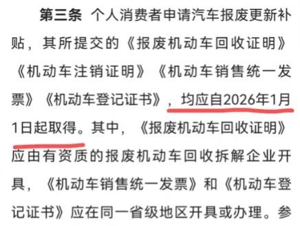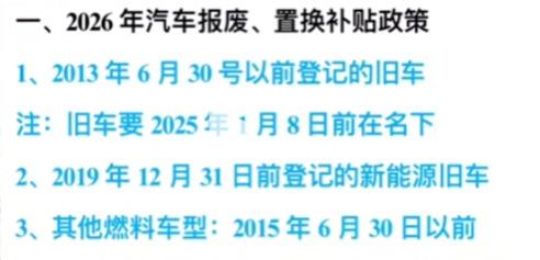 在25年的最后一天,26年的购车补贴政策终于出炉了,咪娅大概看了一下,感觉更人性化了一点,对于真实想买车的车主其实更加友好。非常精准的打击到了“黄牛”群体,下面咪娅给大家稍微总结一下: ①按辆补贴改为按比例补贴 以前报废买新能源是一口价给你补贴两万,(燃油1.5),现在改成按比例了,比如说你现在买一台20万的车,以前只能补贴两万,现在可以补贴两万四。 不过如果是低于十万的车型,就之补贴一万二了,比以前的两万整整少了八千。咪娅感觉在一定程度是更加刺激消费了的,毕竟也会有很多人为了多拿补贴而选择更好的车型。 你别说啥基层老百姓就不配十万车这种话,之前的补贴持续了这么久,真有刚需的基层百姓该买的也都买了,现在这个改法,我倒是觉得非常打击黄牛。 ②新能源更香了! 首先,新能源补贴比例比同档燃油车高 4-6 个百分点。其次保留 2.0L 及以下排量补贴依旧存在(最高1.5)。 而且西部地区的资金承担比例高达95%,这其实已经很照顾北方以及普通老百姓的需求了. 算法是裸车价x12%(油车10%),所以理论上新能源想拿满至少要开票到16.67(油车应该要15以上)。对于想在26年买车的小伙伴,咪娅还有几个注意事项要提醒各位 ①每个人全年只有一次补贴机会,选了置换就没有报废了,而且旧车与新车的交接不能超过6个月 ②报废条件:油车必须是13年6月30以前注册的,柴油是15年6月30之前注册的,新能源是19年12月31前注册的。划重点:旧车必须要25年1月8日前登记在本人名下才行。 ③报废新能源买油车是没有补贴的,(不过我猜应该没有人符合这个条件吧。。。。) 以上就是26年以旧换新补贴的最全内容啦~所以咪娅去年就说了,不用焦虑补贴这个东西,按照我国对新能源这个扶持力度,补贴不会比去年少,再加上还有很多地区(比如上海,深圳)还可以叠加地方补贴,咱们等等党永远不会失败!【来自懂车帝车友圈】