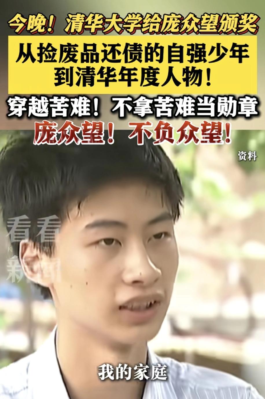 清华大学终于找到正确的宣传方式,这次突出了一位自强不息,品学兼优的寒门学生庞众望