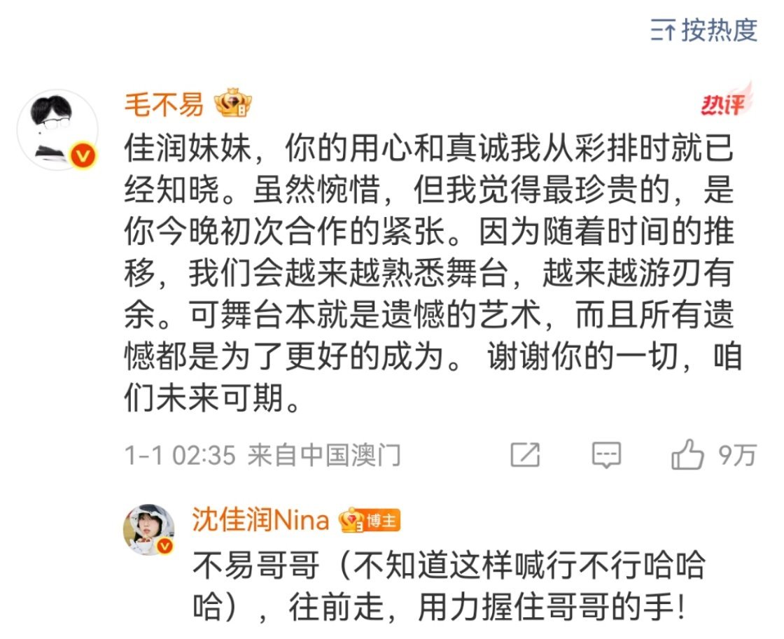 小沈阳回应沈佳润道歉看了晚会,感觉只是太紧张了,再说了谁第一次上大舞台不紧张啊?虽然有点跑调,但你的声音和表现里的那份青涩和真挚,恰恰是最打动人的地方。而且能直面自己的不完美,第一时间出来承担,已经很棒了。以后的路还长,这点小波折算啥