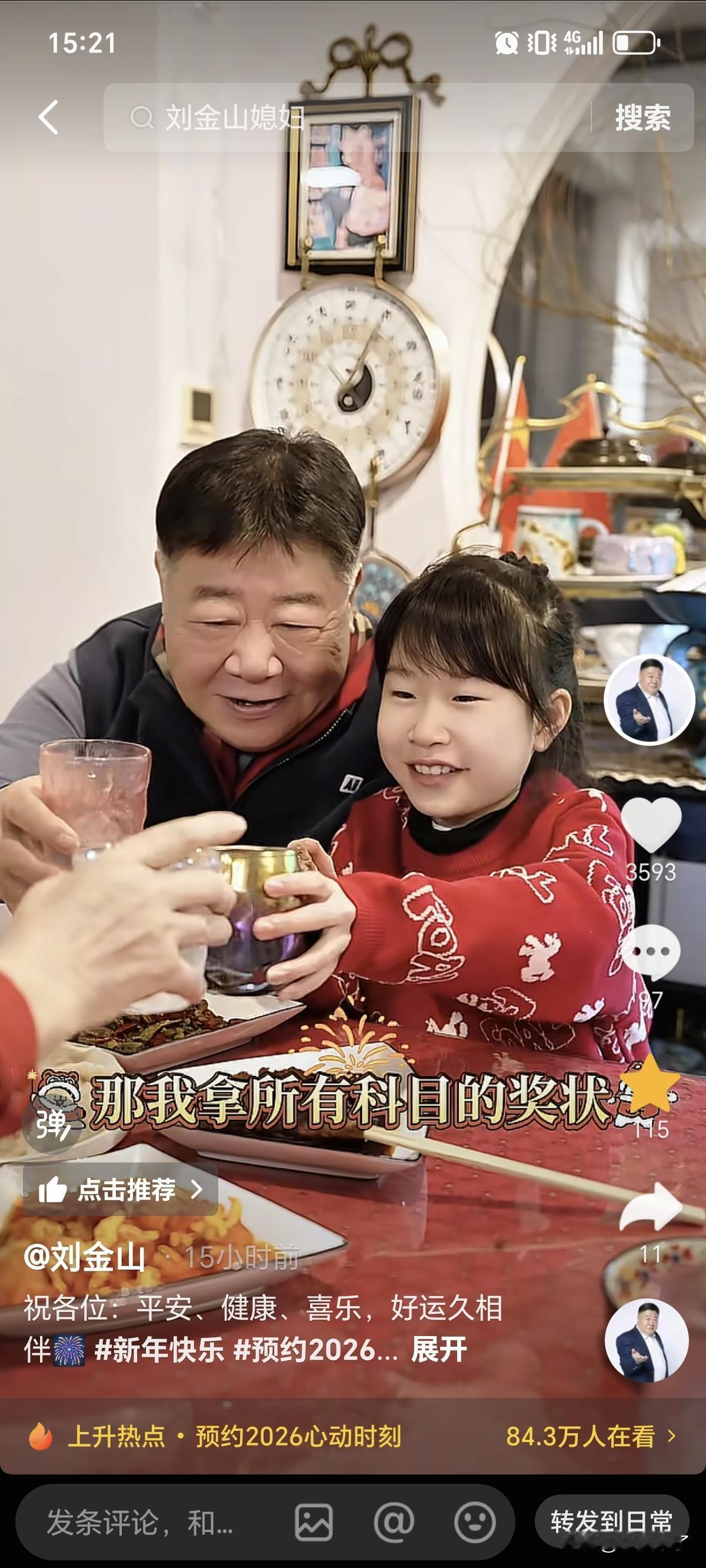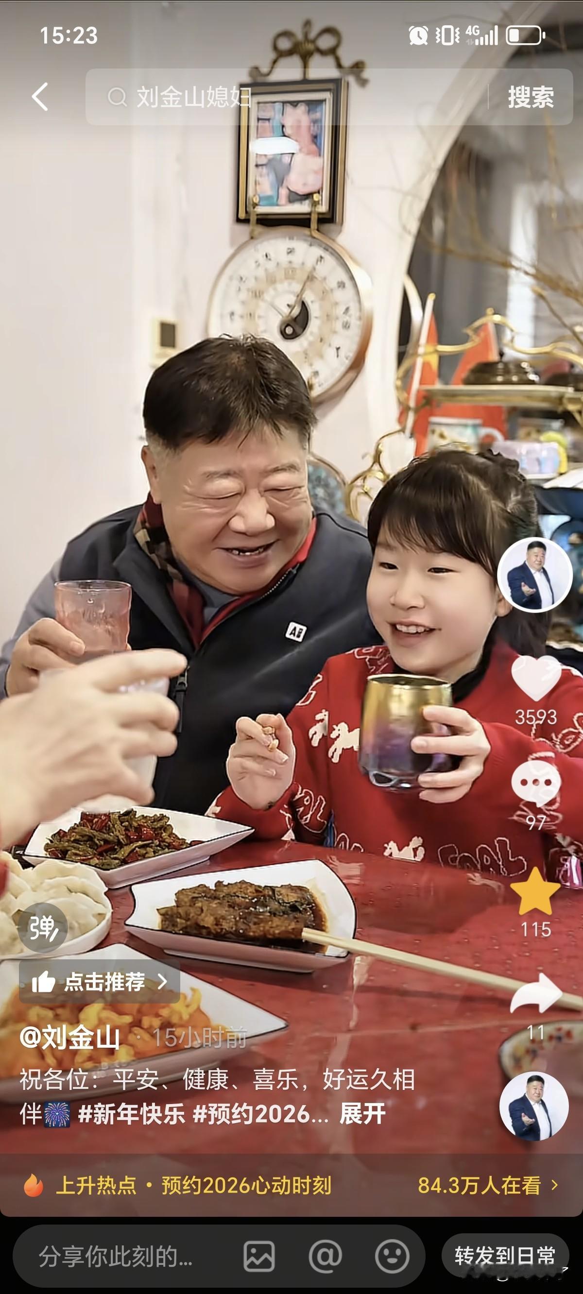 演员刘金山跨年夜晚饭经济又实惠,整体来说,一共6个菜,分别:豆角炒辣椒,西红柿炒鸡蛋,油焖大虾,红烧丸子,红烧茄子,辣椒酥,主食是饺子,以上这些食材去市场买,超不过100块钱,由衷感叹,家风不错,朴实无华。 另外,有一个细节,引起网友注意,为什么刘金山已经60多岁了,可是女儿才9岁呢? 原来当初为了照顾生病的老人,选择不要孩子,等走了之后,才有精力生,如今只剩下了老丈人。可见,那些年不好过,既要承受老人催生的压力,还要面对外界的流言蜚语,挺过来,一切都好了。 同样都在北京生活,我相信刘金山一年肯定花不了100万[笑哭],也照样活的挺潇洒。