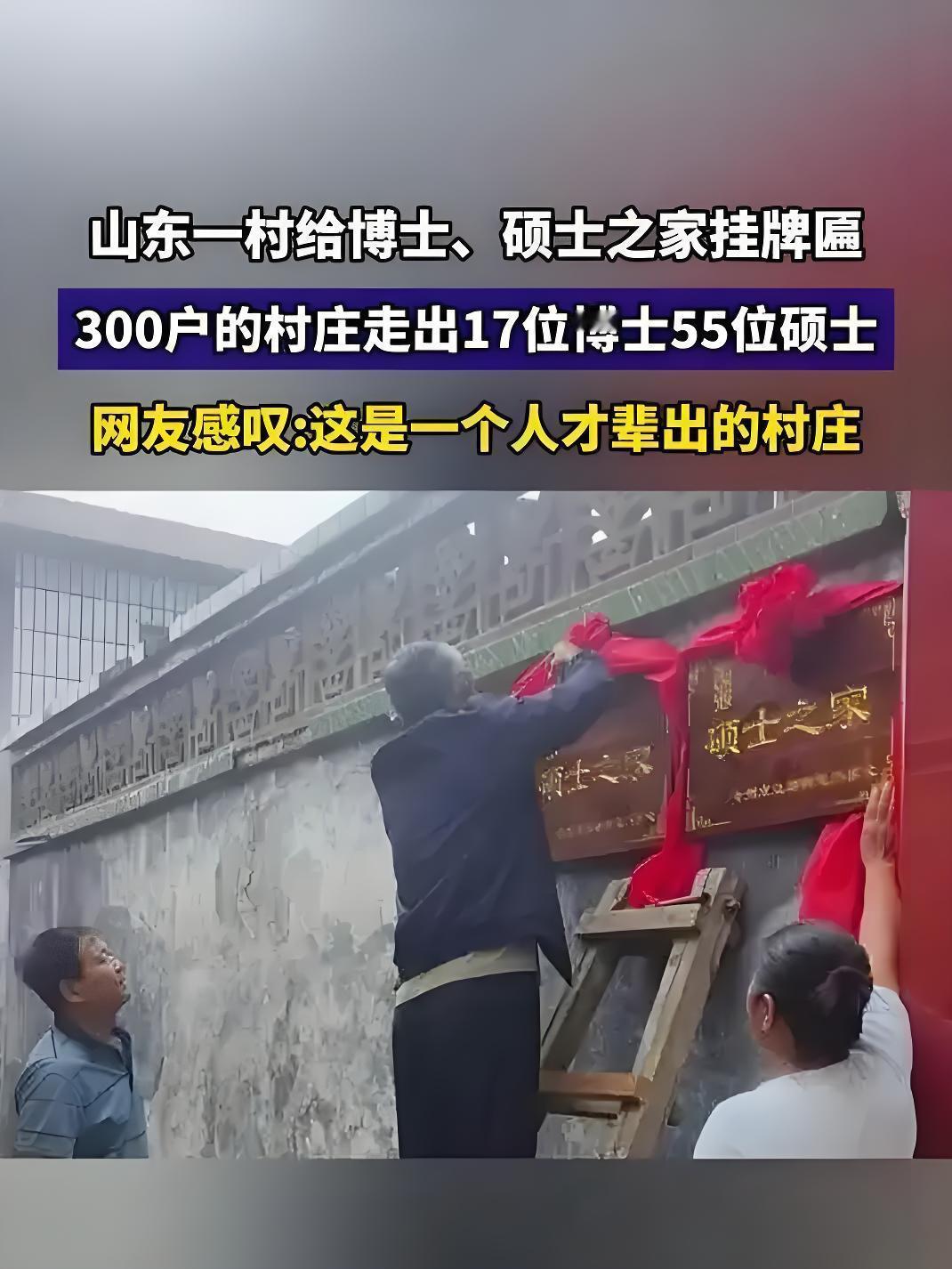 山东300户小村炸翻全网!17位博士+55位硕士,这才是最高级的"炫富"! 山东又出"神仙村庄"!潍坊青州西张村,一个只有300户人家、1000多口人的普通村落,竟然走出了17位博士、55位硕士和104名本科生,平均不到两户就有一个本科以上高材生,妥妥的"学霸聚集地"! 更让人惊艳的是,村里没有豪车豪宅的攀比,最耀眼的"奢侈品"是家家户户门楣上的牌匾——红底金字的"博士之家""硕士之家",比城里的学区房还让人羡慕!村民碰面不聊车子房子票子,张口就是"你家孩子期末考得咋样""谁家娃又考上研究生了",用老人的话说:"咱村不比金、不比银,就比谁家孩子学习好"! 这个小村的"成才密码",其实简单又实在: - 30年坚持重教:从90年代起,村里就给大学生发奖励,当年200块的奖金在那个年代是实打实的认可,这份重视从未断过; - 氛围比补习班管用:孩子从小看着邻居家挂起的学霸牌匾,听着长辈讲学子们的励志故事,耳濡目染就把"读书光荣"刻进了心里; - 精神奖励最动人:村里专门给硕博家庭挂牌,这份全村公认的荣耀,比任何物质奖励都能激发家庭的教育动力。 更难得的是,这里的教育从不是"死读书"。村里把省级非物质文化遗产绣球灯舞搬进学校当校本课程,让孩子既读万卷书,又传承传统文化,真正做到了"身心双健"。而走出大山的学子们也没忘本,有人回乡指导村民种油茶带动集体经济,有人假期返乡义务义诊,用知识反哺家乡。 网友们看完纷纷破防:"这才是真正的乡村振兴,比盖多少高楼都管用""这样的村风太珍贵了,比任何学区房都值钱""原来最好的教育,就是全村都崇尚知识"!