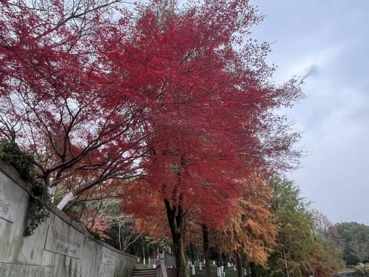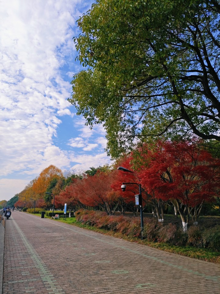 #冬日燃动#继续和同事江边跑3公里。枫叶红、银杏黄、河水