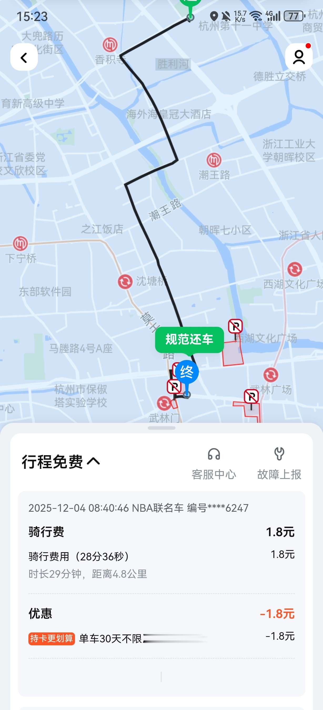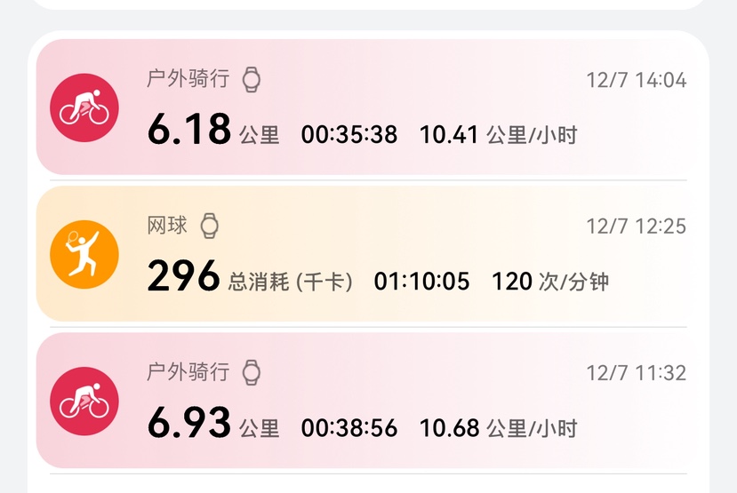 橙友@橙小鱼:12月运动打卡D5-骑行♀13km,网球1h,杭州的周末天气太给力啦。