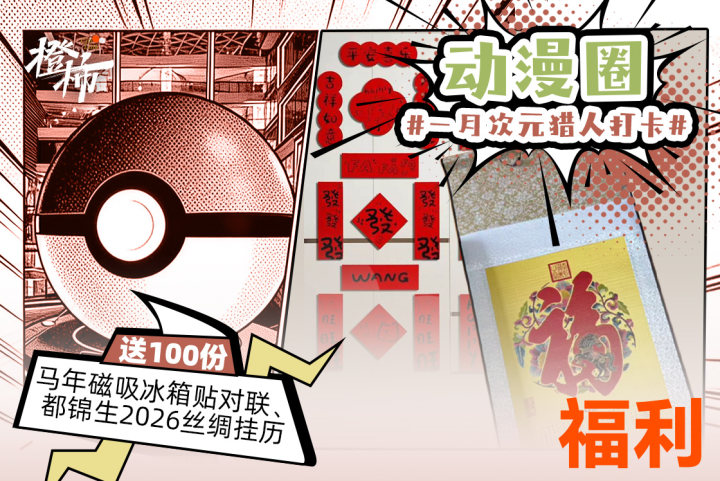 动漫圈#一月次元猎人打卡#,送100份马年磁吸冰箱贴对联、都锦生2026丝绸挂历
