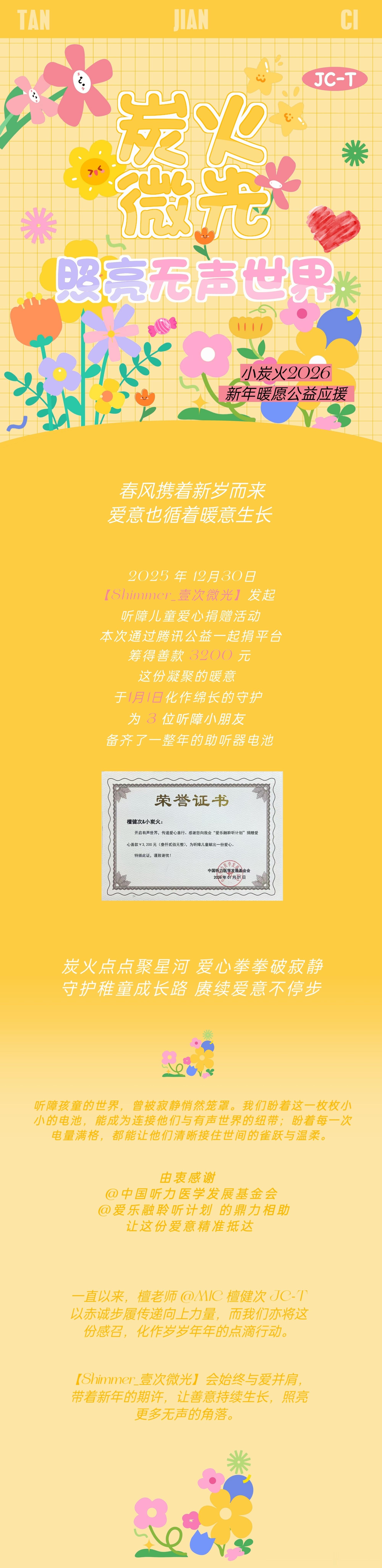 檀健次粉丝新年公益小炭火用爱照亮他人