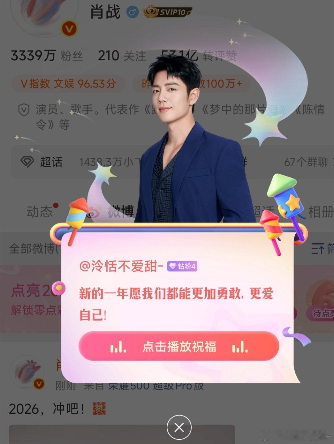 卧槽 果然还是唯粉会磕。。。肖战刚说完2026更爱自己 王一博直接手势2026=