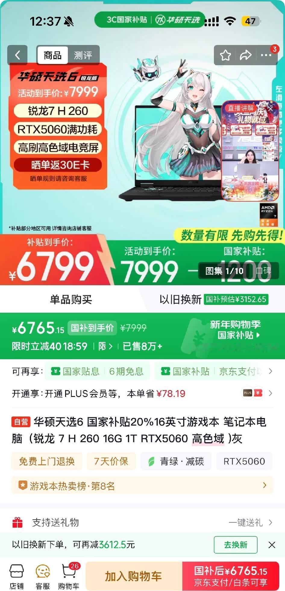 2026国补你不想笑吗? 国补=补贴商家和厂商,越补越贵,真不会气笑吗?昨天2025年最后一天的拯救者和天选基础款差不多6500的样子,今天2026第一天国补到手价更贵了,看来还是pxx适合我这种穷鬼。