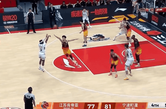 第四节比赛,辛普森后撤步三分命中,还剩1分钟宁波领先7分。