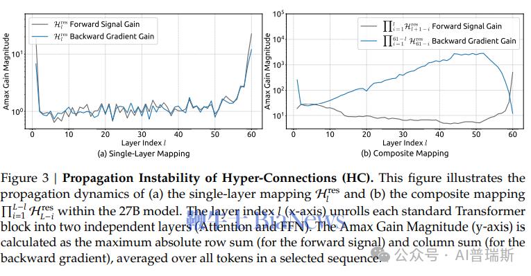 论文指出,这类结构虽然在理论上更灵活,但在实际训练中容易出现梯度爆炸、信号失真、训练不稳定等问题。在部分实验场景中,信号甚至会被放大上千倍,导致模型难以收敛,训练成本急剧上升。