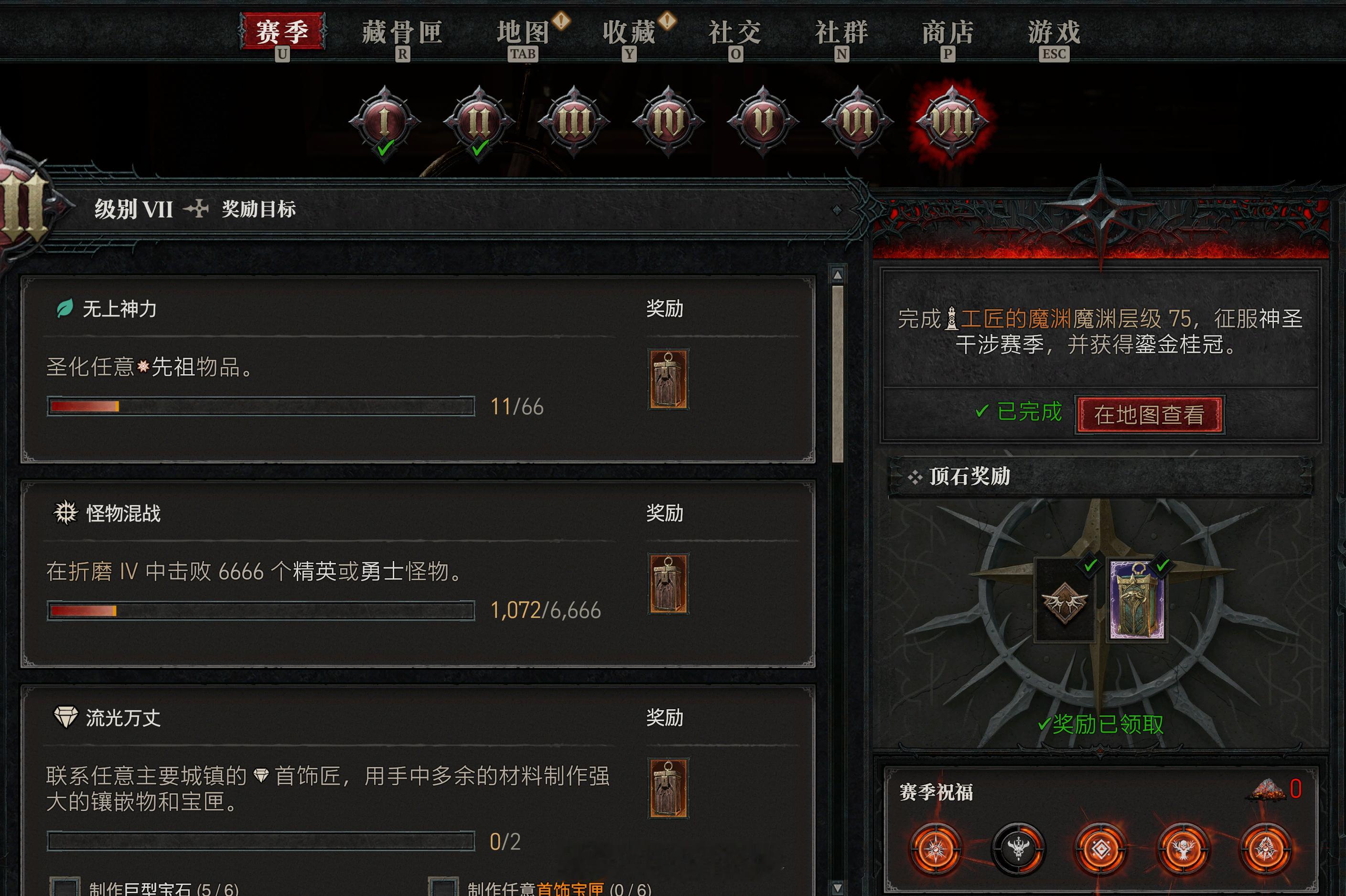有谁玩暗黑4的?为什么我打开地图老是提醒我有赛季奖励,但是点到赛季奖励这里又啥都