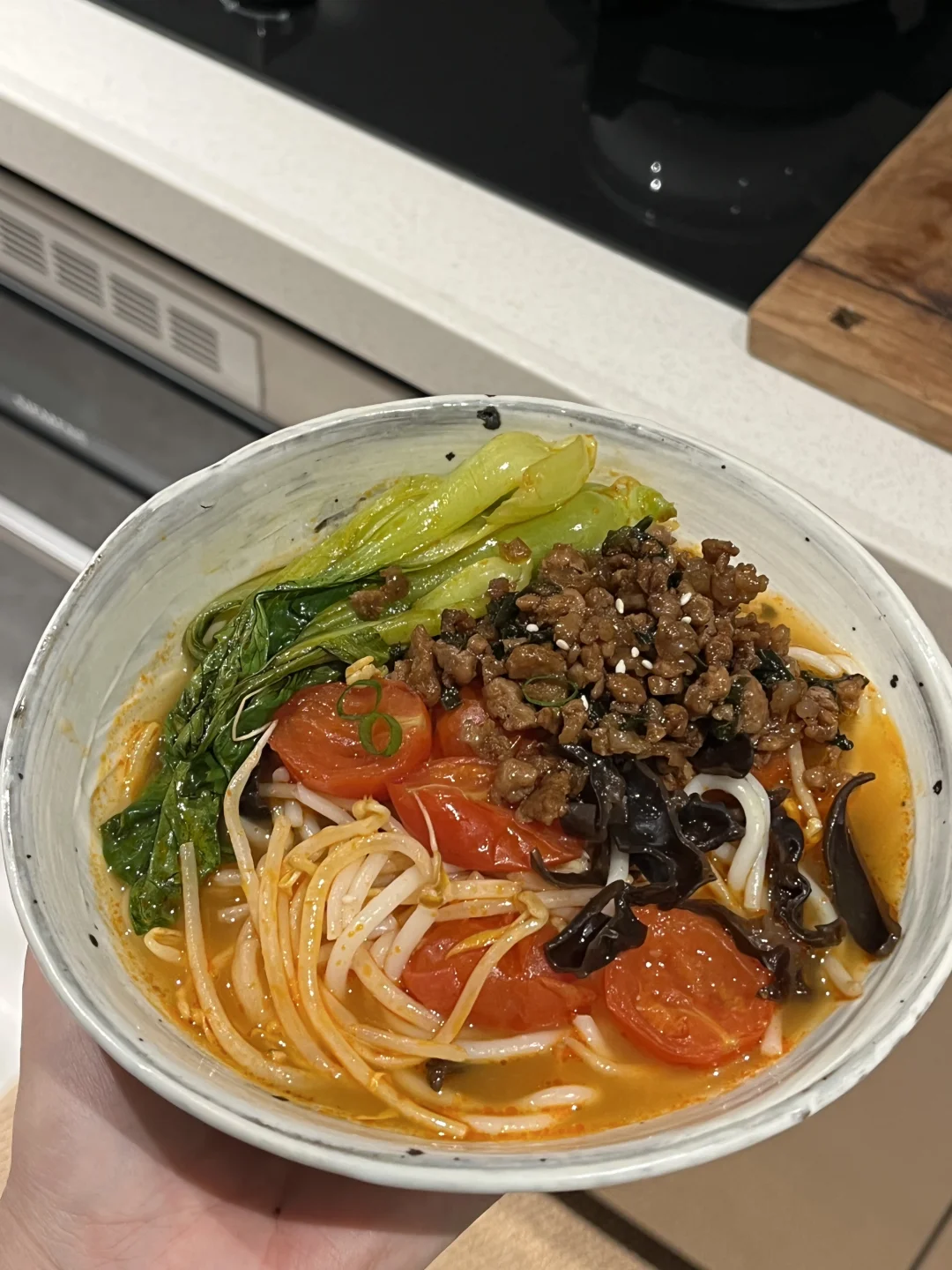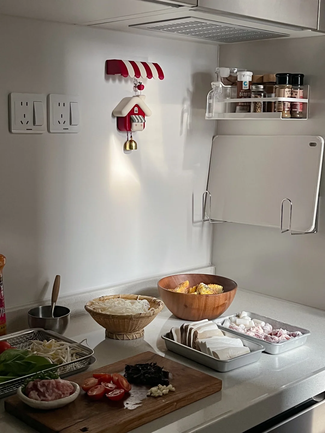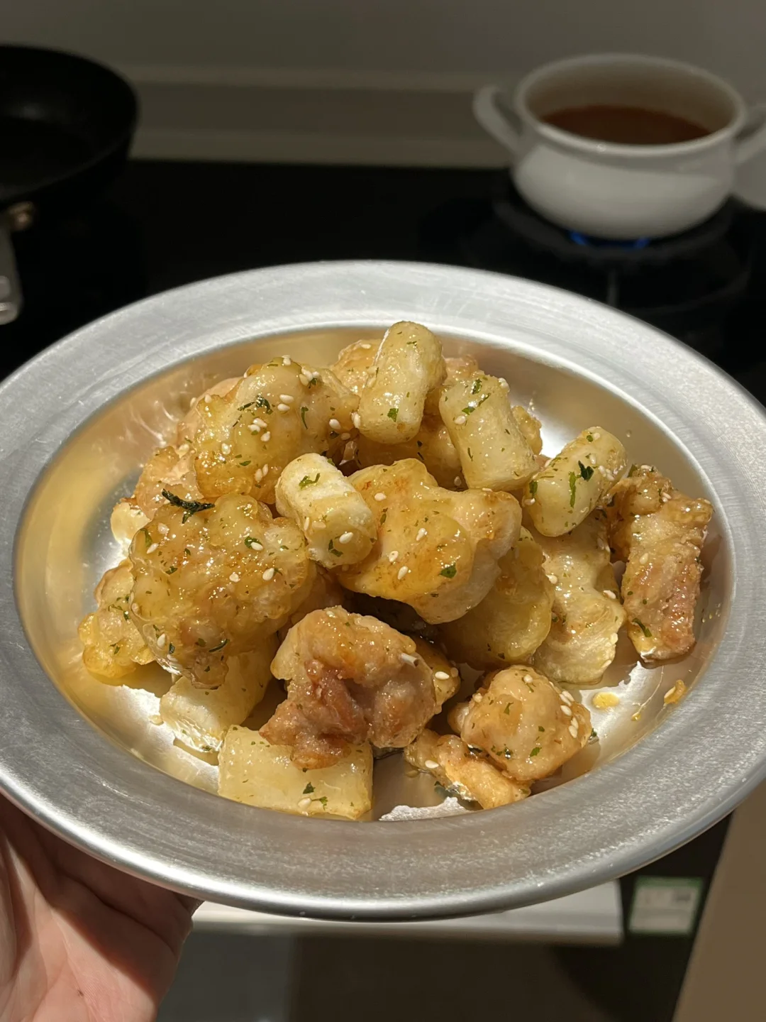肉酱红酸汤米线🌶 豉汁儿菜🍃 辣芝士烤玉米🧀 黄油蜂蜜年糕炸鸡🍗 青柠冰可乐🥤