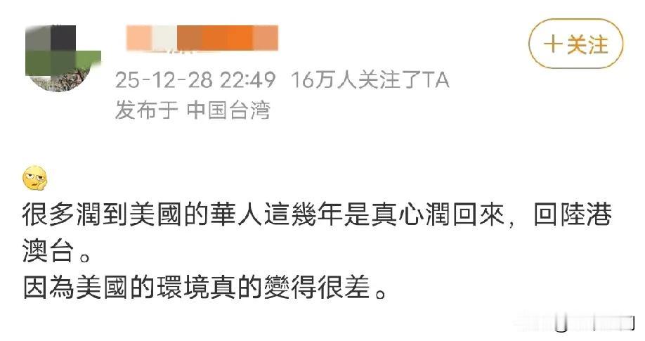 润美的华人这几年都想回来,因为美国这几年真的变得很差,而且那些外网的大公知,影响力越大的,越想回来,甚至有些外网大公知都往国内递话,希望能转做“污点证人”,看能不能既往不咎,然后让它们回来,这些人还是太高看自己了,真以为自己有影响力,实际上国内的网友只是把它们当做电子宠物而已,无非就是出名的电子宠物和不出名的电子宠物而已!不过那些只是出去混口饭吃,跟讲师那样的润人,要回来完全不成问题,但有一些润人是永远回不来的!