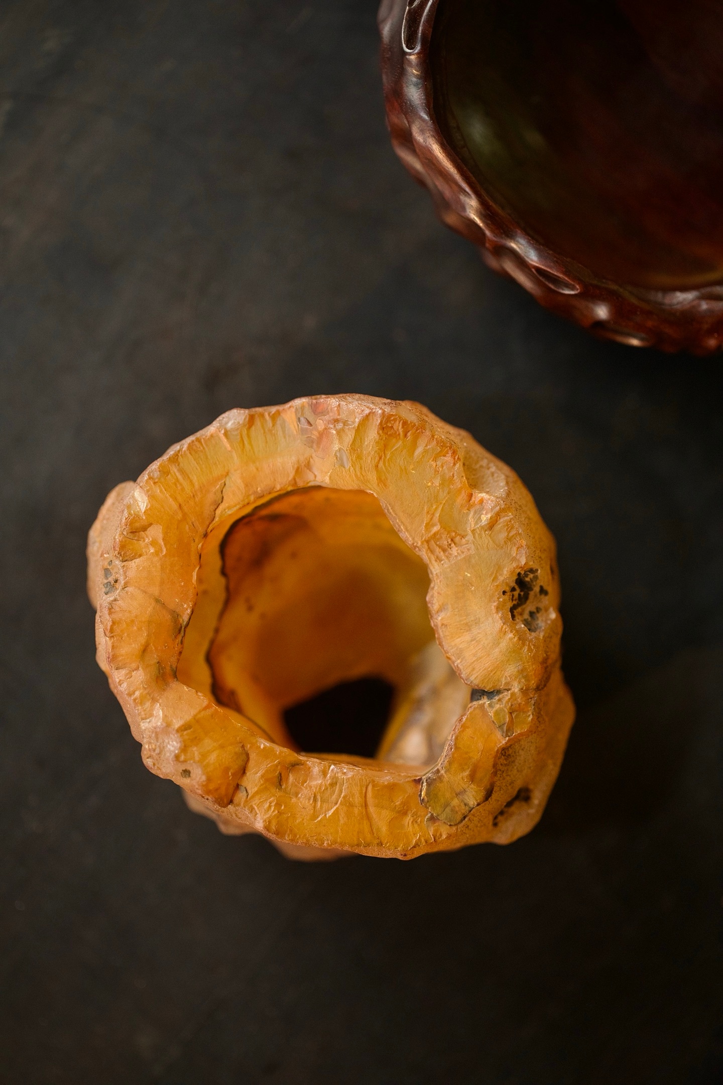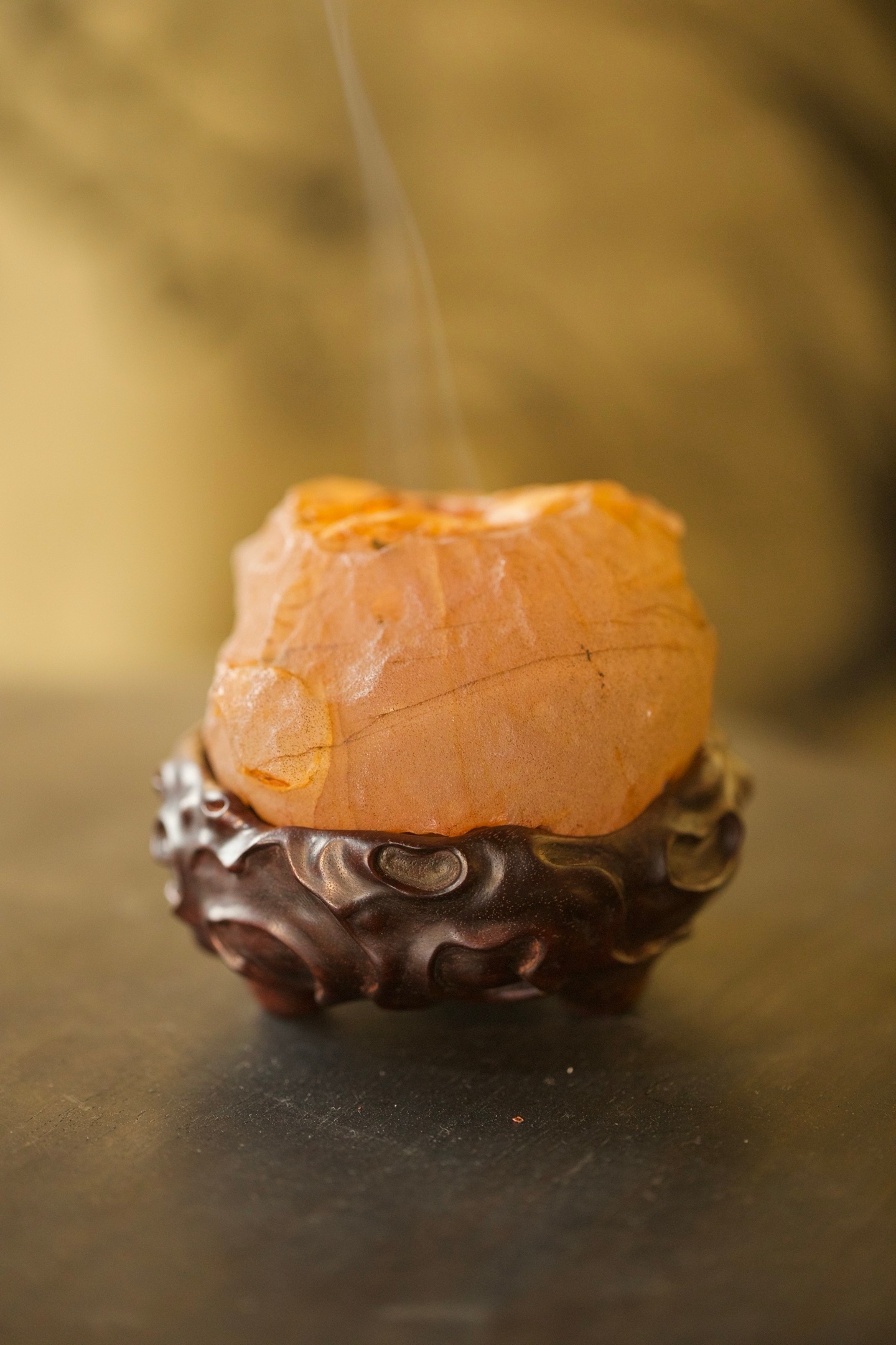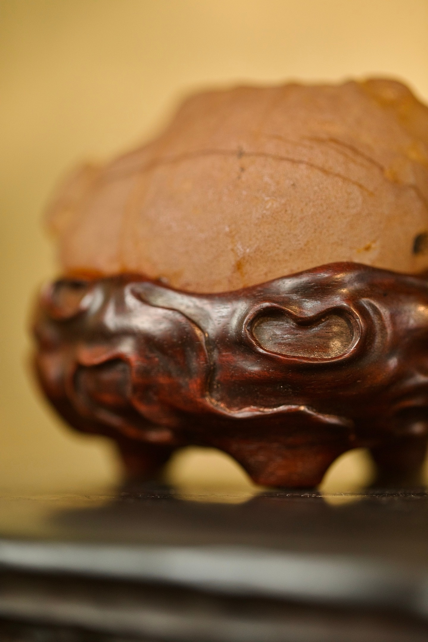 玛瑙 | 香炉这只香炉由整块玛瑙随形打磨而成,保留了原石的质朴与厚重。搭配古朴的