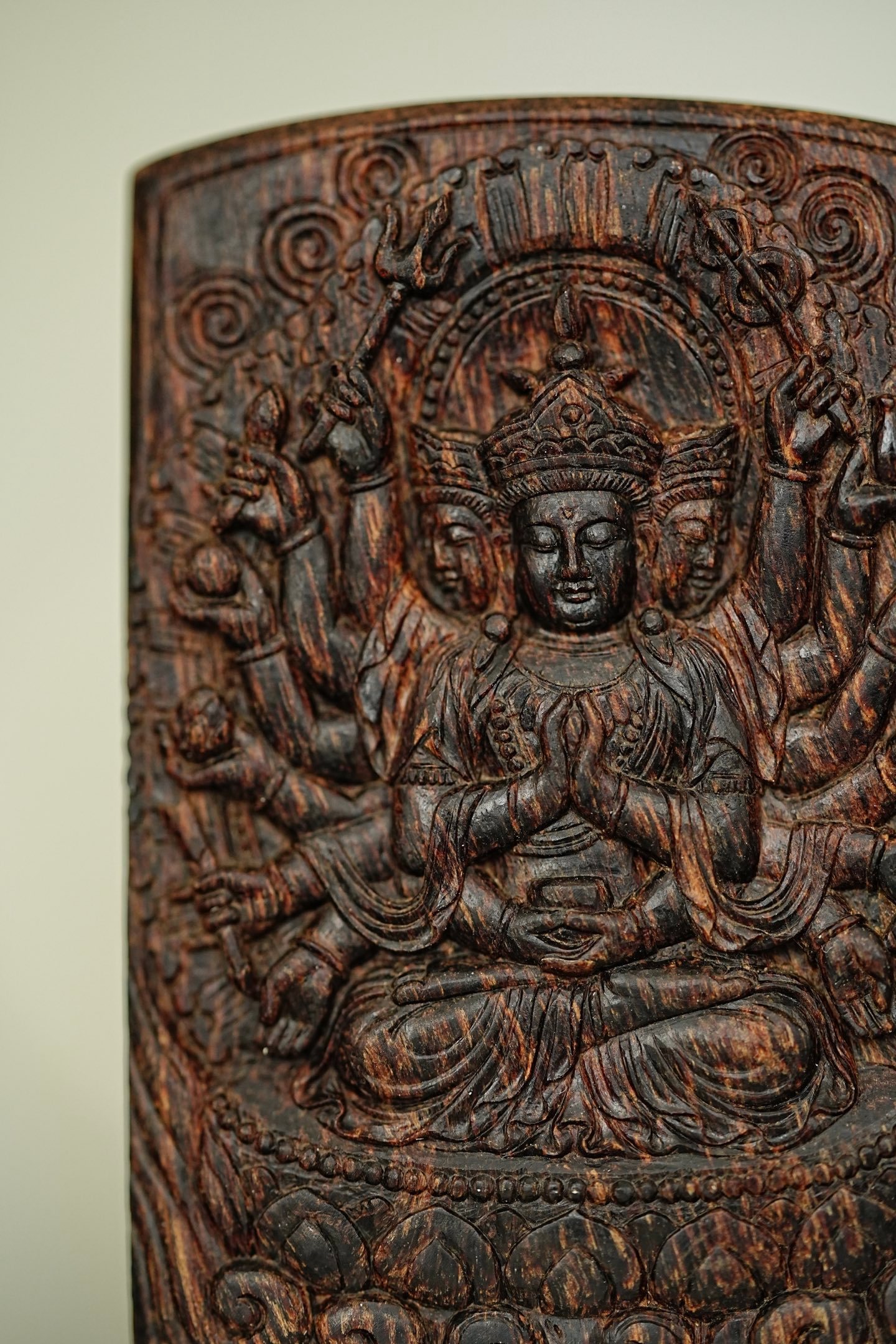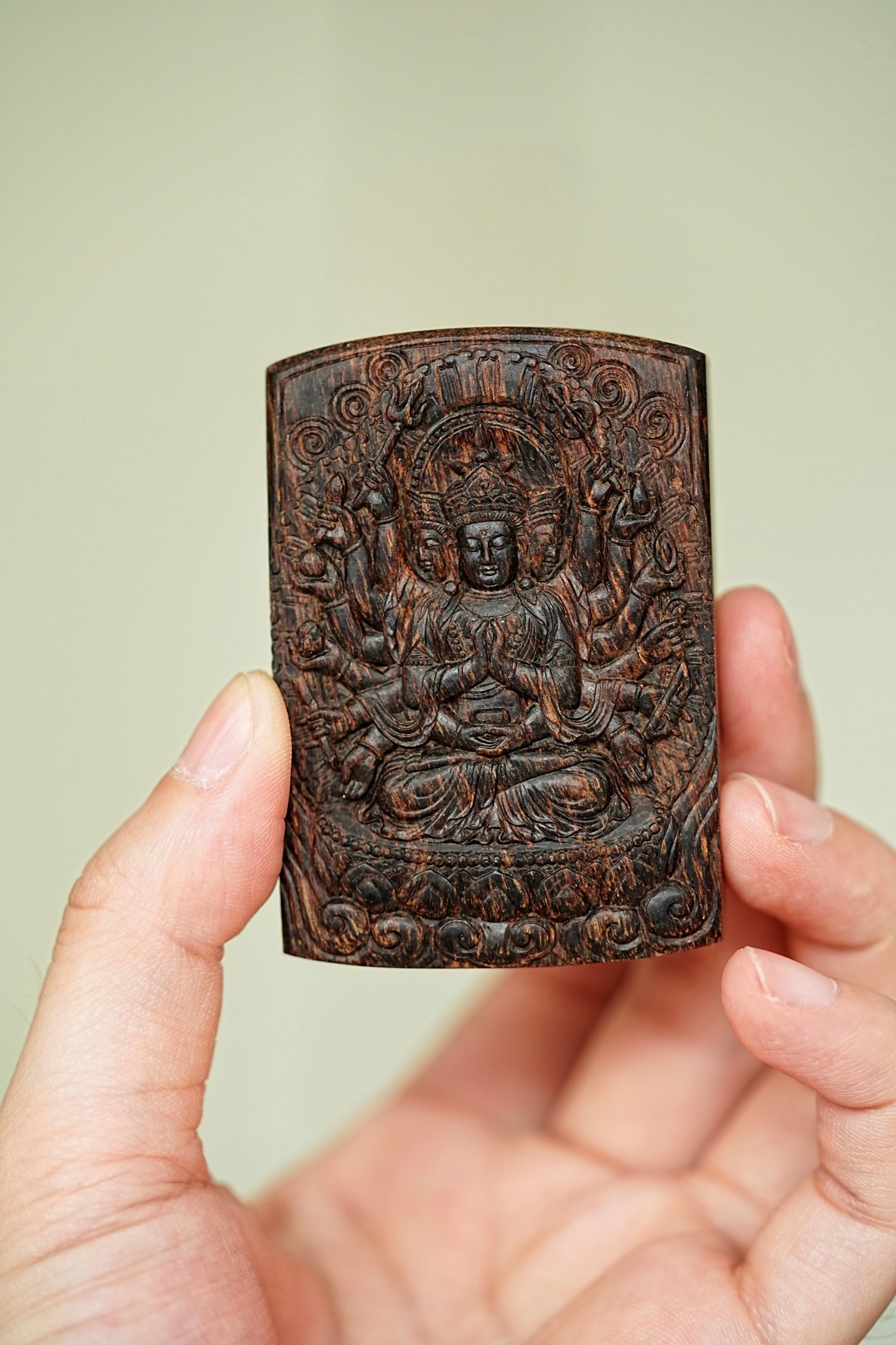 文莱黑棋老料 沉水“千手观音”牌正区文莱老料,雕刻属相“子鼠”的守护神“千手观音