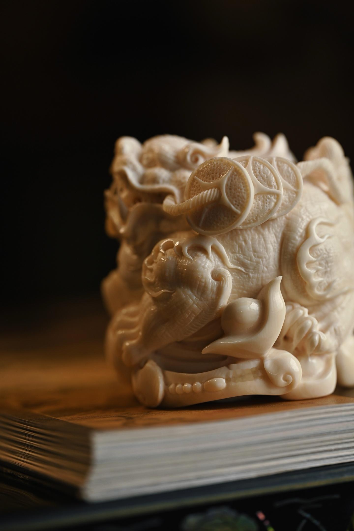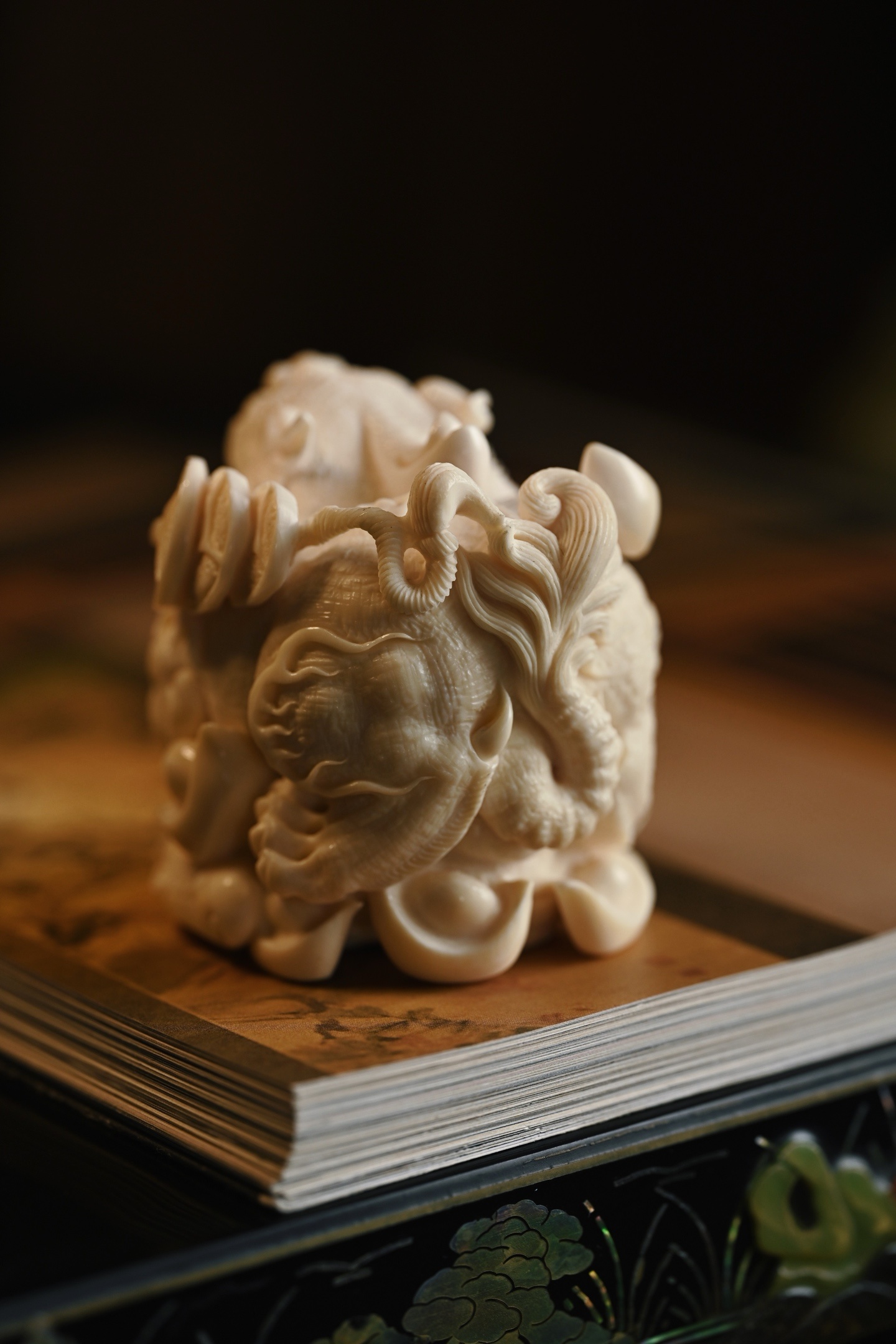 猛犸 | 貔貅雕刻貔貅铃眼长牙,身形壮硕,霸气威武,料质莹润,背驼钱串,满身元宝,寓意招财,陈设、把玩皆可。5.8*6.2*6.2cm 197g