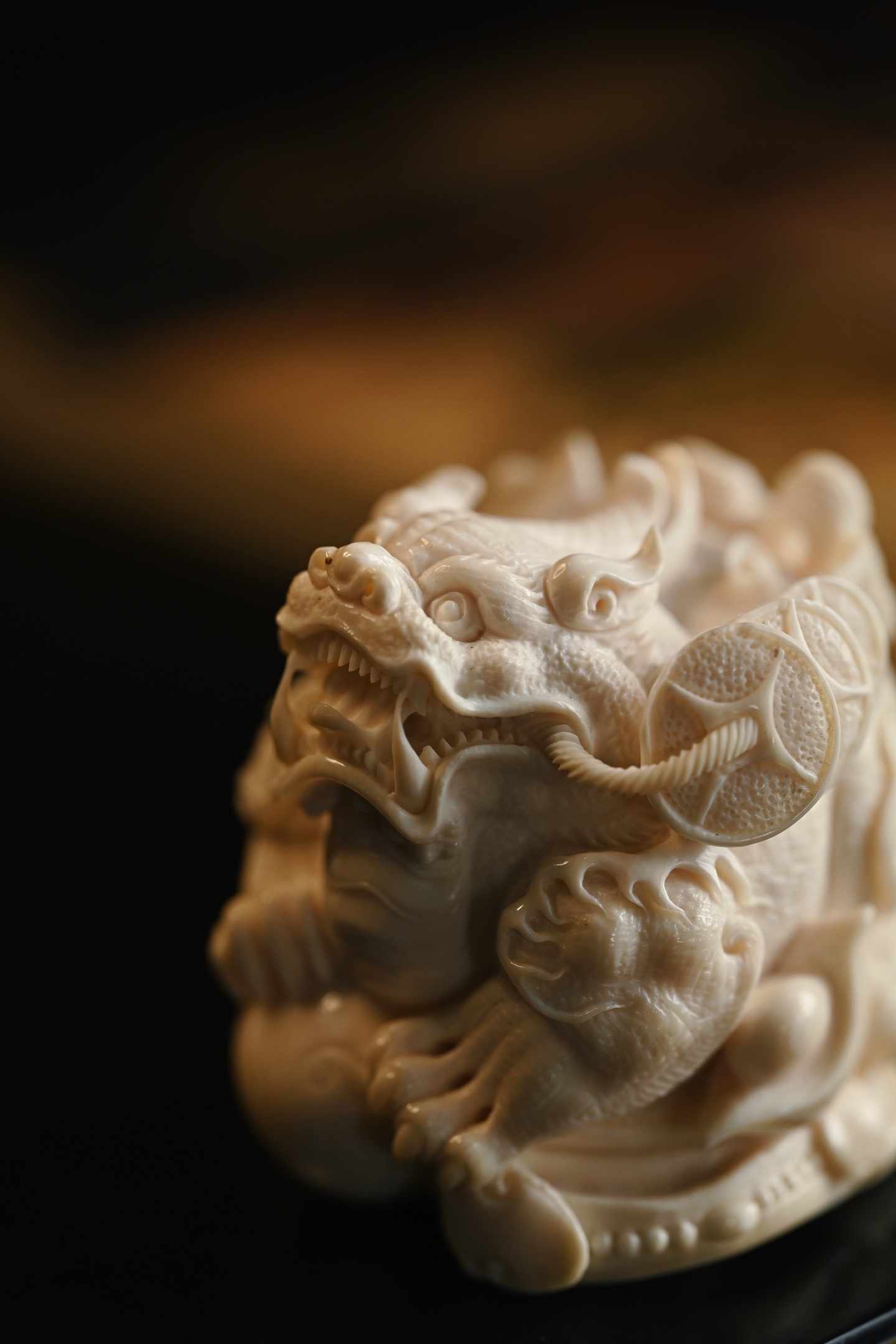 猛犸 | 貔貅雕刻貔貅铃眼长牙,身形壮硕,霸气威武,料质莹润,背驼钱串,满身元宝