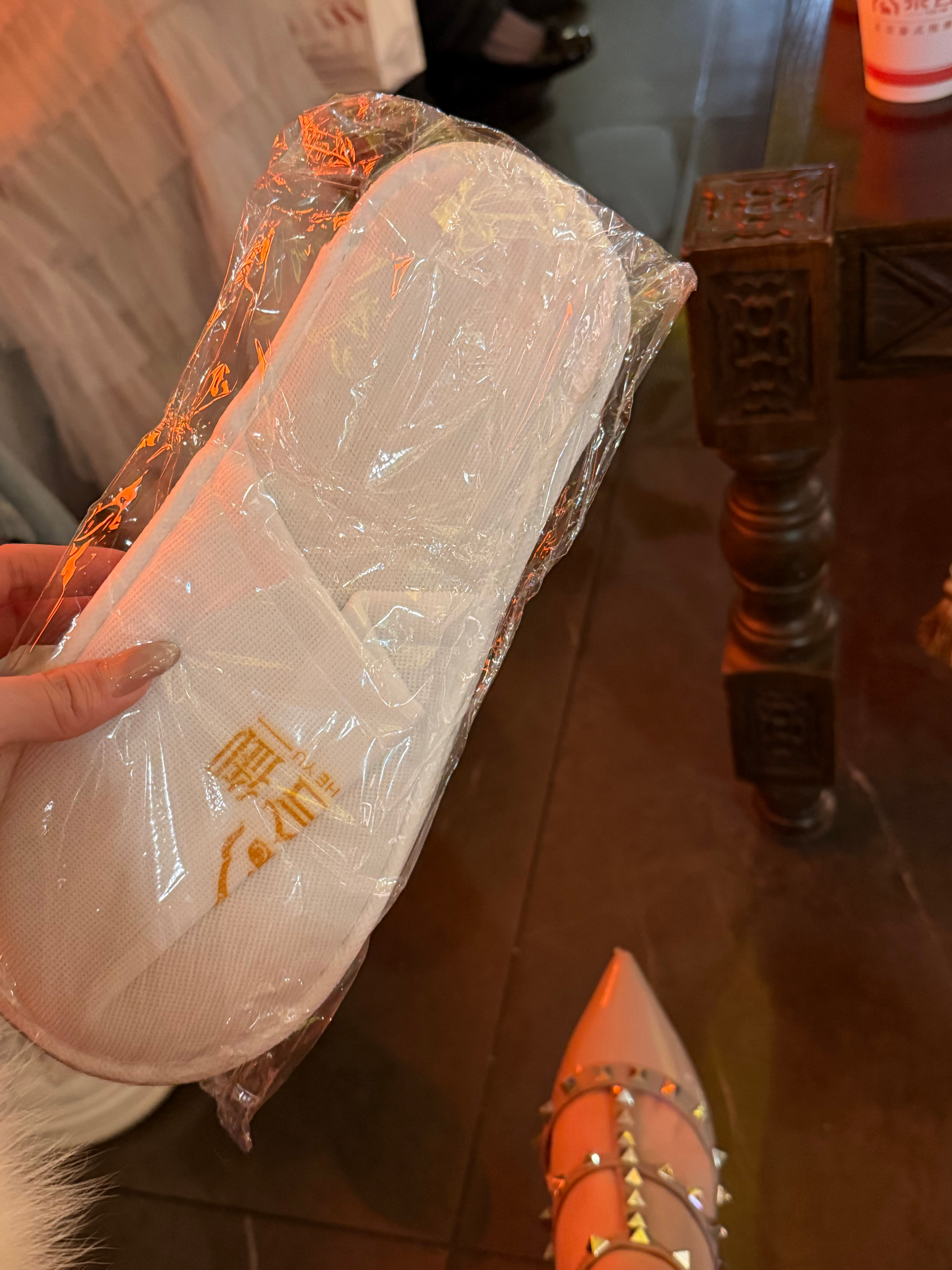 华伦天奴会惩罚我…脚好疼。疼得受不了两个人跑去足浴店买了两双一次性拖鞋然后走在路上被人看拖鞋 有点搞笑