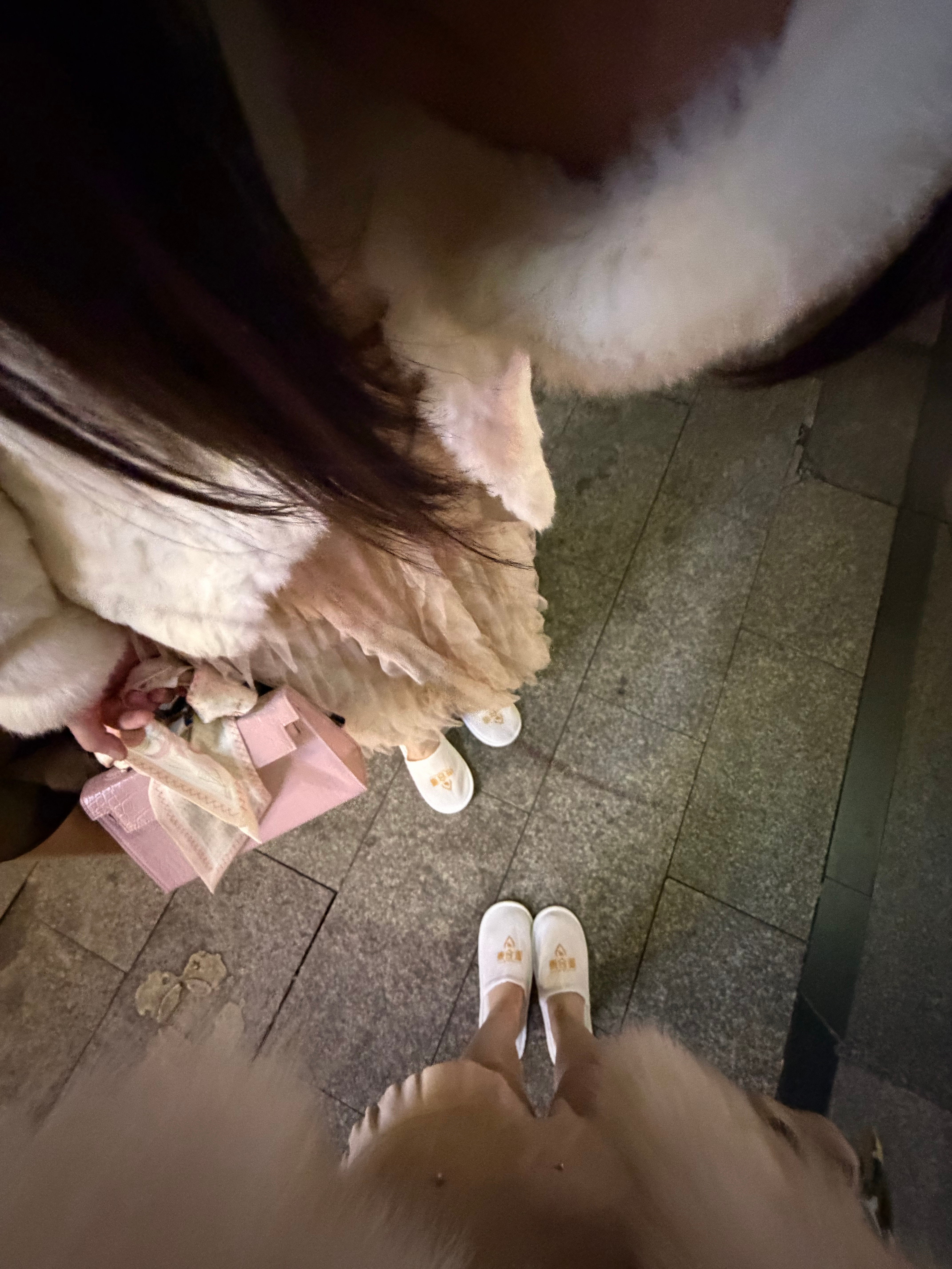 华伦天奴会惩罚我…脚好疼。疼得受不了两个人跑去足浴店买了两双一次性拖鞋然后走在路