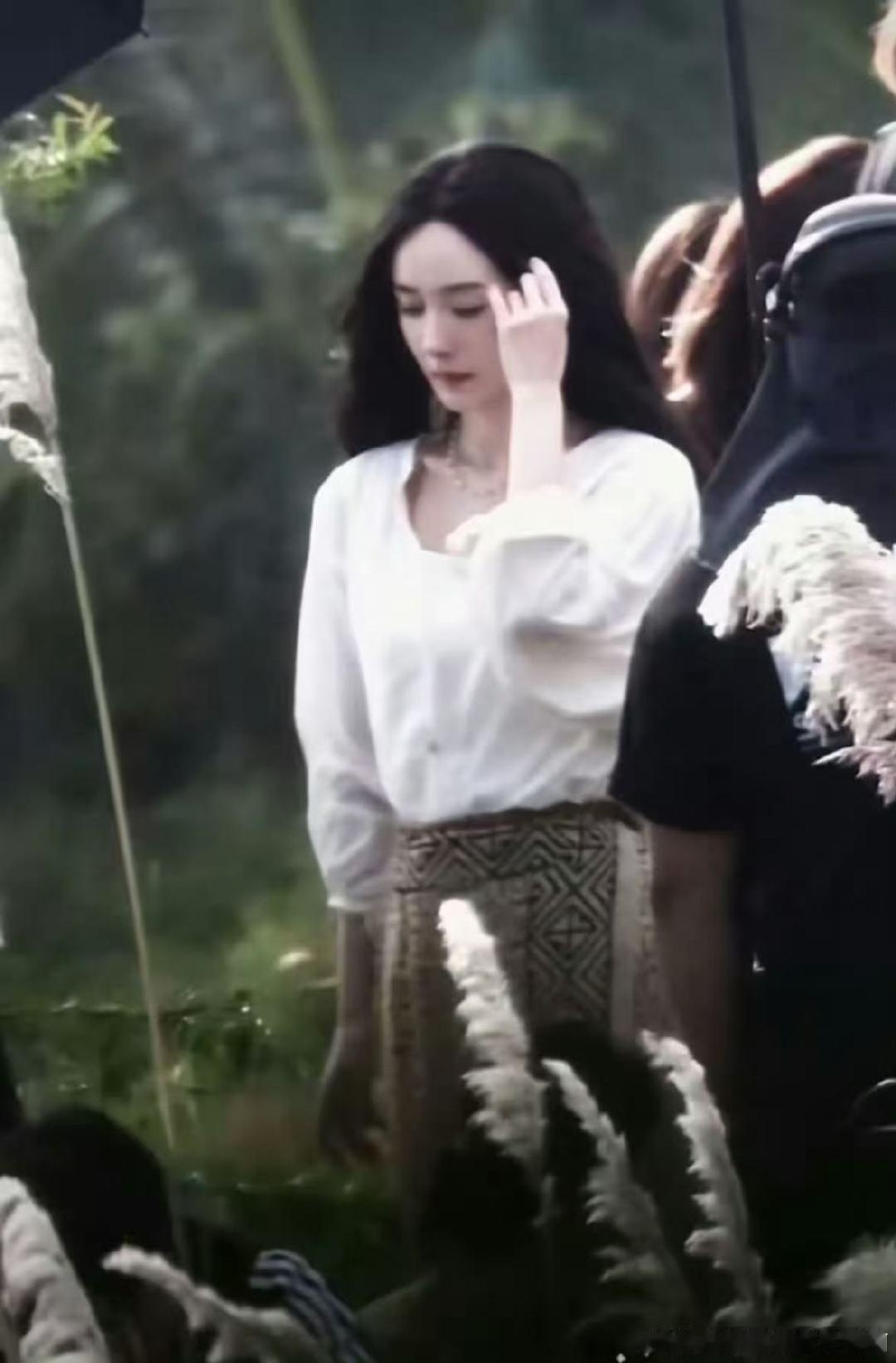 杨幂末路狂花白衣路透 杨幂路透这套造型完全白月光女神级别啊~太美了!
