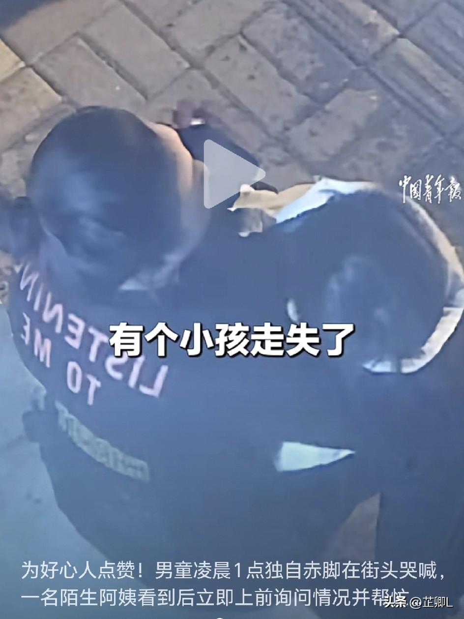 寒冬凌晨一点,街边出现一个只穿尿不湿的光脚丫男娃,哭着找妈妈,接下来一幕让人心暖暖的…… 深夜一点的横店街头,冷风刺骨。刚下班的赵女士拐进鳌鱼路,突然听见细细的哭声——路灯下,竟有个光脚丫、只穿尿不湿的小不点在路边发抖。 “这谁家孩子?!”赵女士心头一紧,四周空无一人。她快步上前蹲下,把哭花脸的小男孩整个裹进自己大衣里:“宝宝不怕,阿姨在这儿。” 孩子说不清家在哪儿,赵女士抱着他在附近商铺一家家问,却没人认得。 眼看孩子冻得哆嗦,她干脆坐在路沿,像抱自家娃一样把孩子搂在胸前,一手拍背一手报警:“警察同志,这里有个两三岁的孩子走丢了,只穿着尿不湿……” 几分钟后警灯闪烁而来。“你看,就这么点衣服,我真不放心。”赵女士说着把孩子小心递过去。辅警立刻脱下警服外套,把孩子裹成“小粽子”抱上后座。 警车缓缓沿街绕圈,民警摇下车窗逢人就问。终于,在另一条街口找到个慌慌张张的女人——正是孩子妈妈!原来家里忙收工,孩子睡醒找不见人,自己溜出了门。 “快谢谢警察叔叔!”妈妈一把搂住孩子,声音发颤。而那位用大衣裹住孩子的赵女士,早已悄悄离开现场。 这个寒夜,一个陌生人的怀抱、一件警用外套、一趟趟耐心的寻找,串起了最暖的守护网。 网友感叹:“这就是人间温度!” 提醒所有家长: 天冷夜长,一定看好娃!教孩子记住家长电话和住址,万一走丢别乱跑,认准警察叔叔最靠谱。 寒冬很冷,但人心很暖。为赵女士和民警的暖心接力点赞! 素材来源:新华社,侵联删!